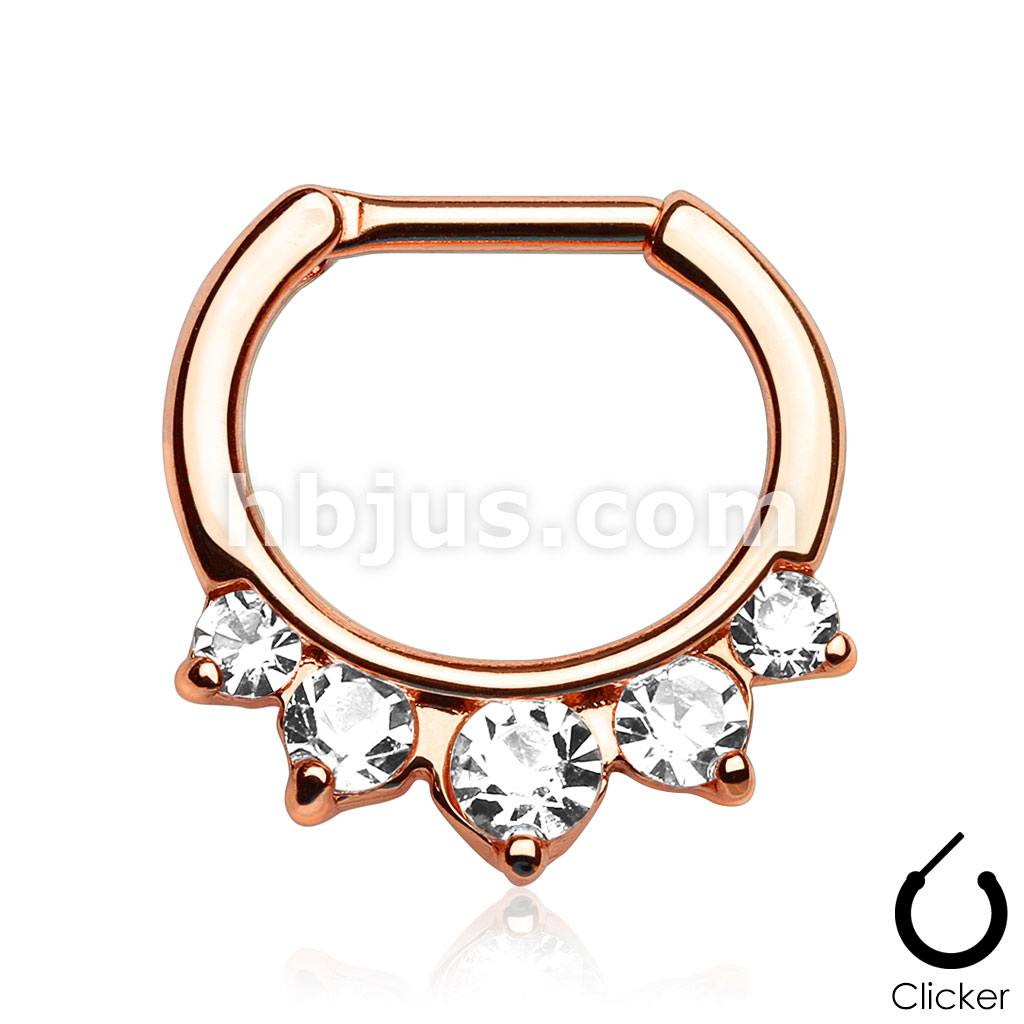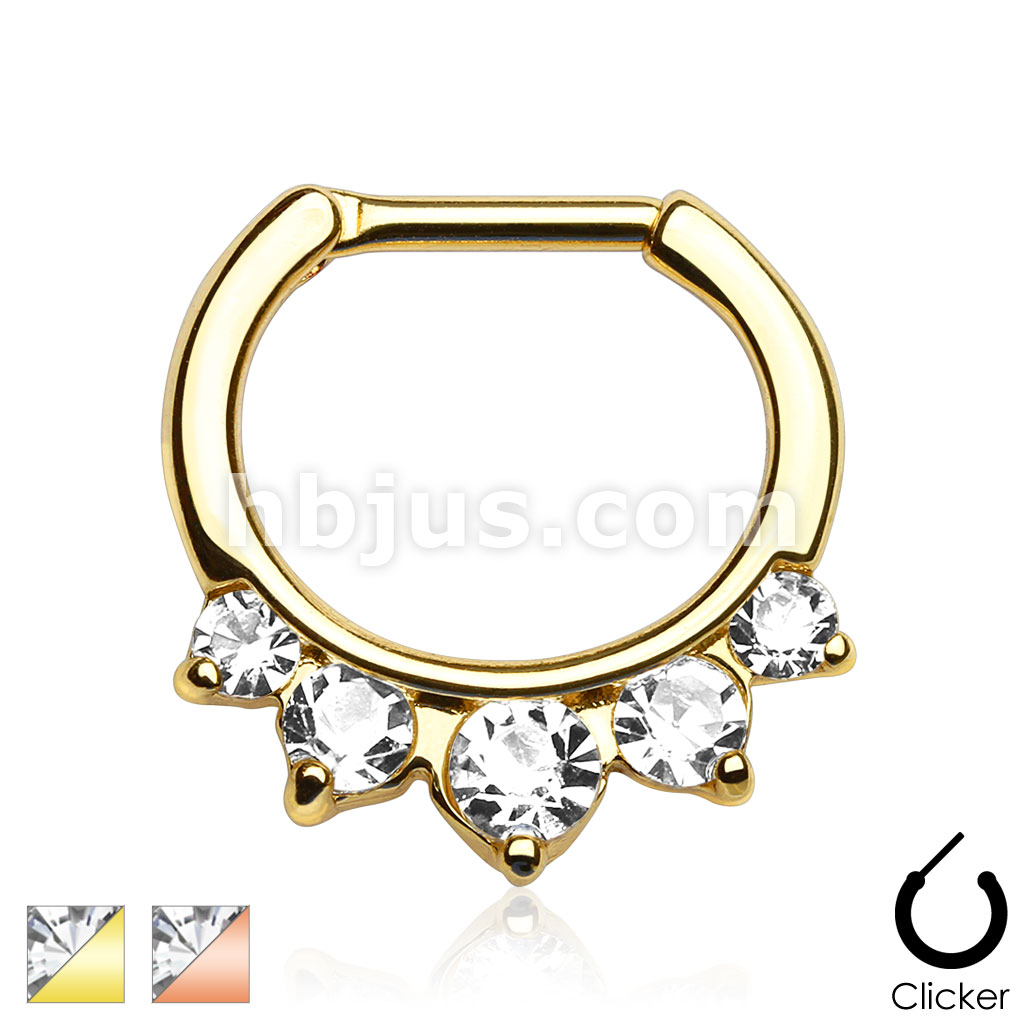 Five Pronged CZs Gold IP Over 316L Surgical Steel Septum Clicker