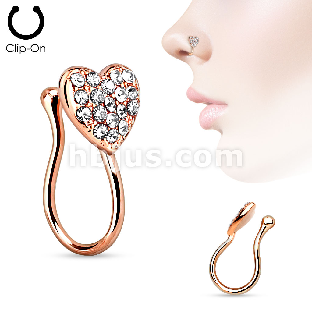 Heart with Gems Non Piercing Gold IP Nose Clip