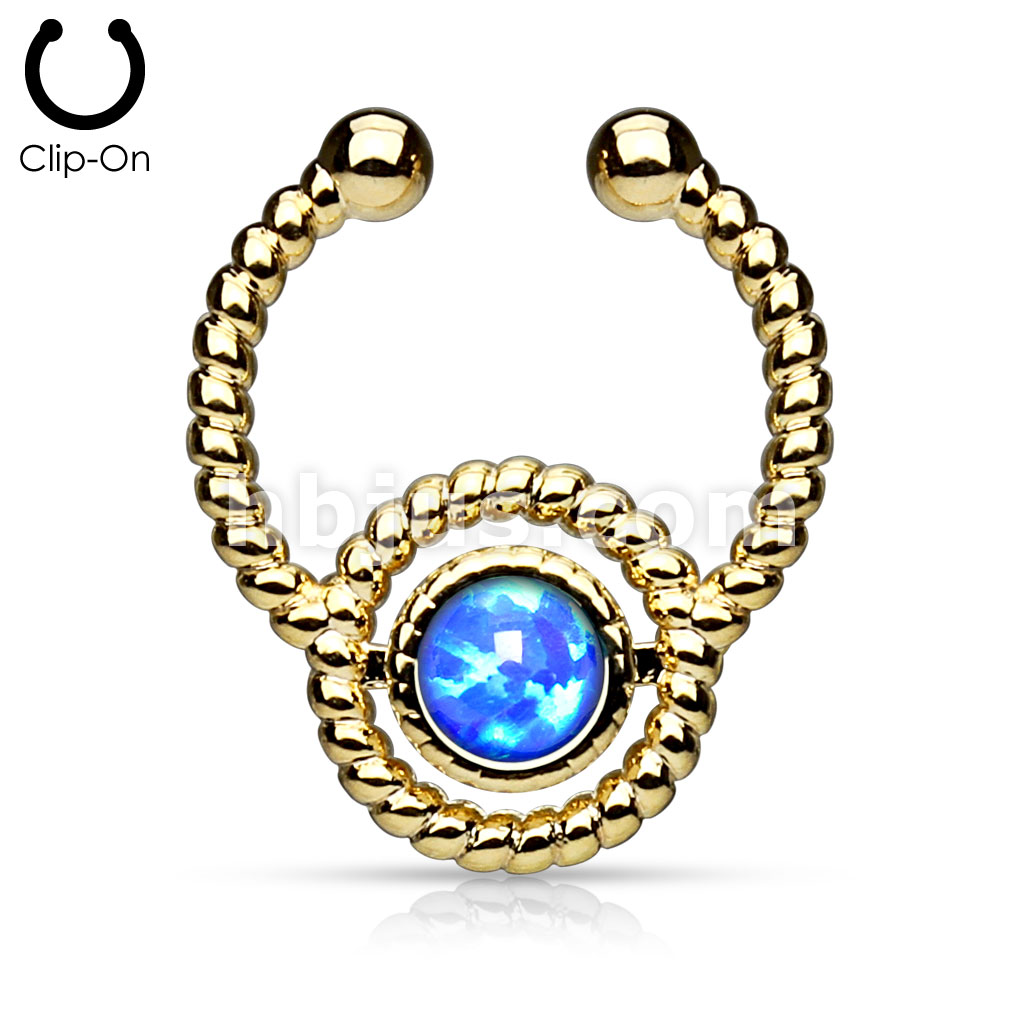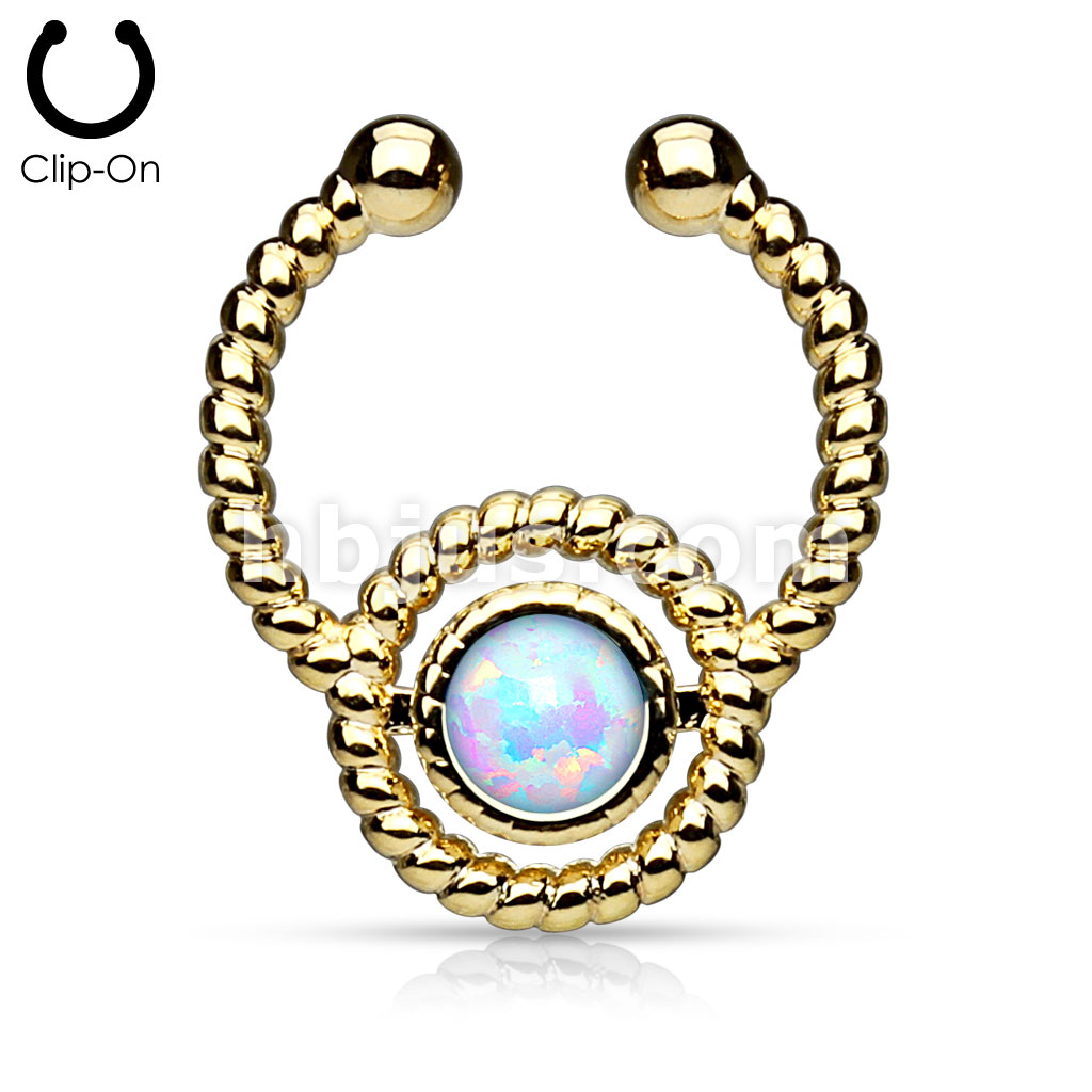 Roped Circle with Single Opal Non-Piercing Gold IP Septum Hanger