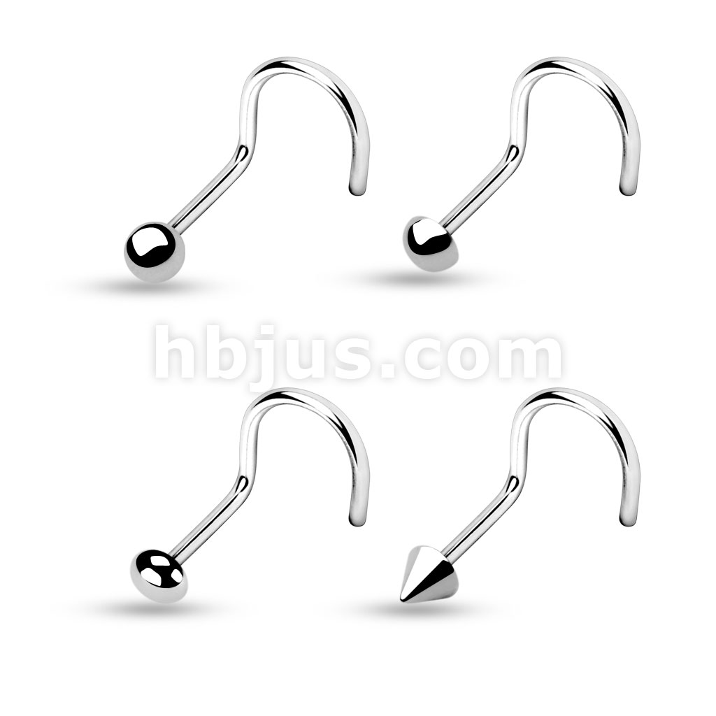 200 Pcs 316L surgical Steel Nose Screw Mixed shape tops Bulk Pack ( 50 pcs x 4 Styles )