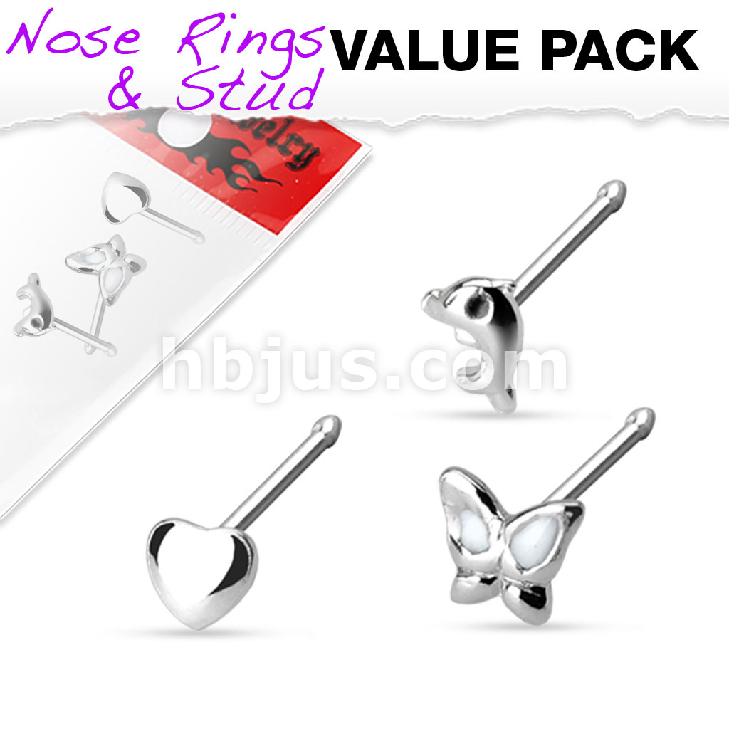 3 Pcs Value Pack of Assorted .925 Sterling Silver Nose Stud