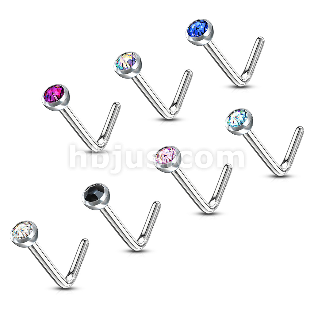 7 Pcs Value Pack of Assorted Press Fit Gem 316L Surgical Steel L Bend Nose Ring