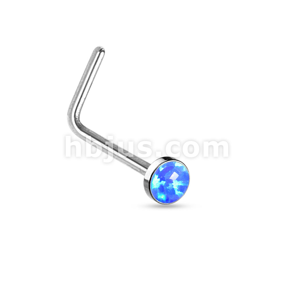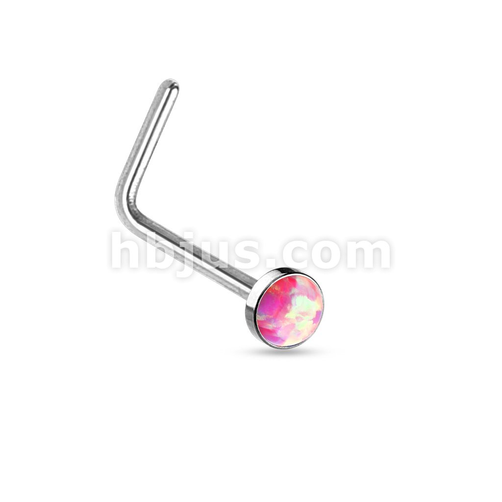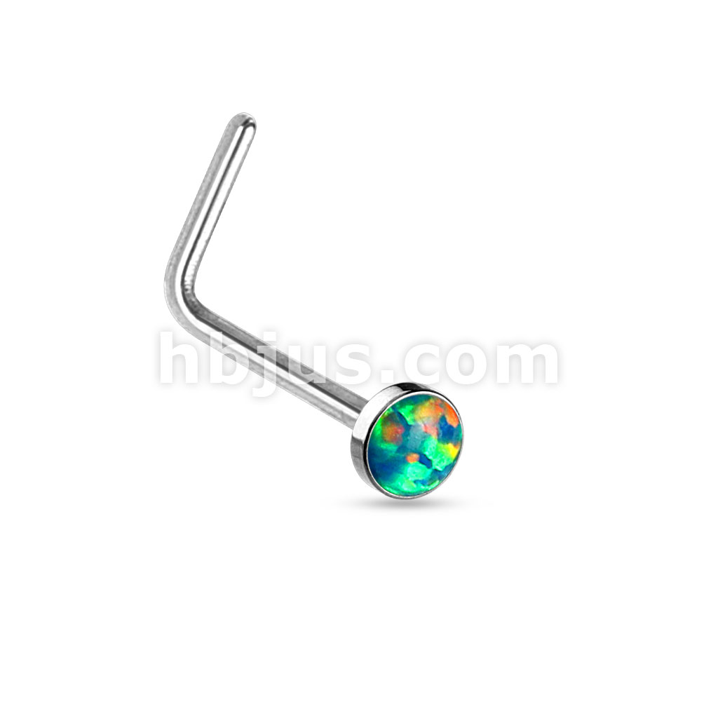 Opal Set Flat Top 316L Surgical Steel "L" bend Nose Stud Rings