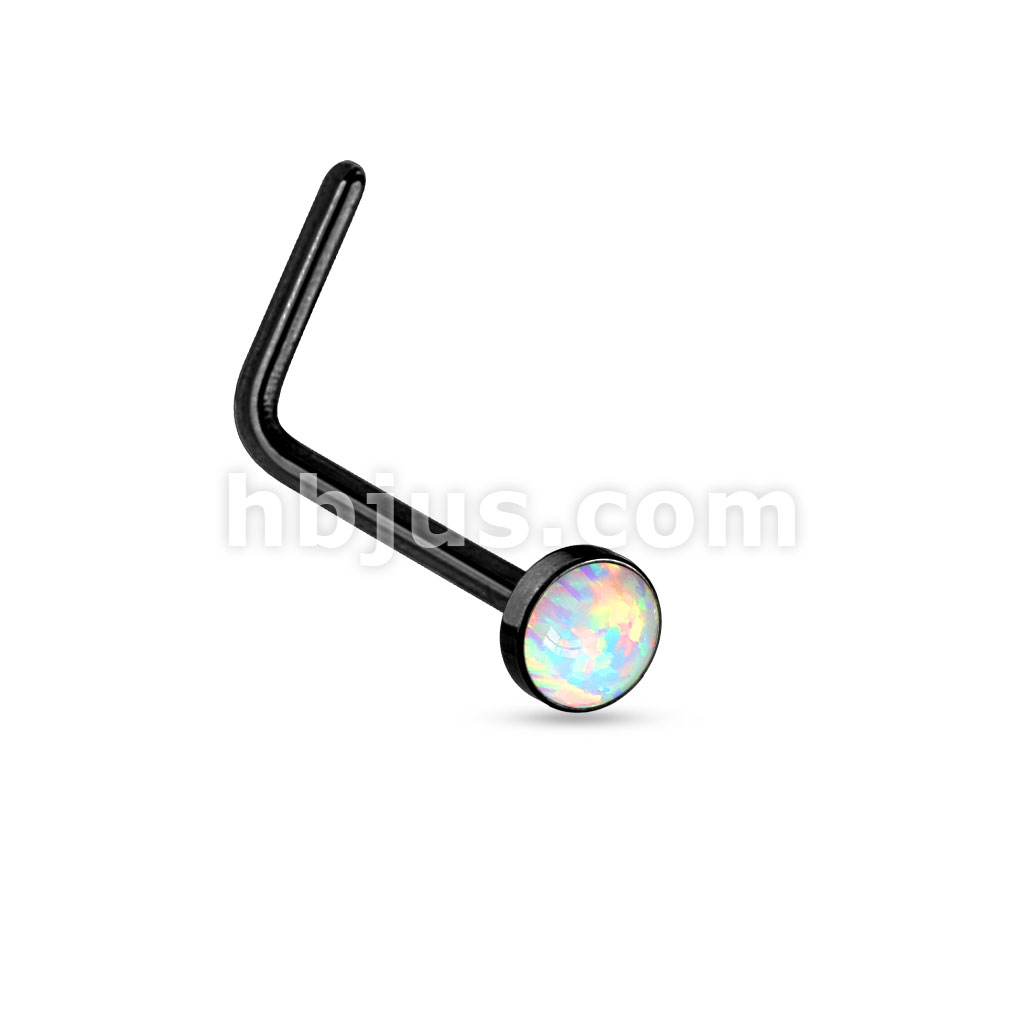 White Opal Set Flat Top PVD Over 316L Surgical Steel "L" bend Nose Stud Rings
