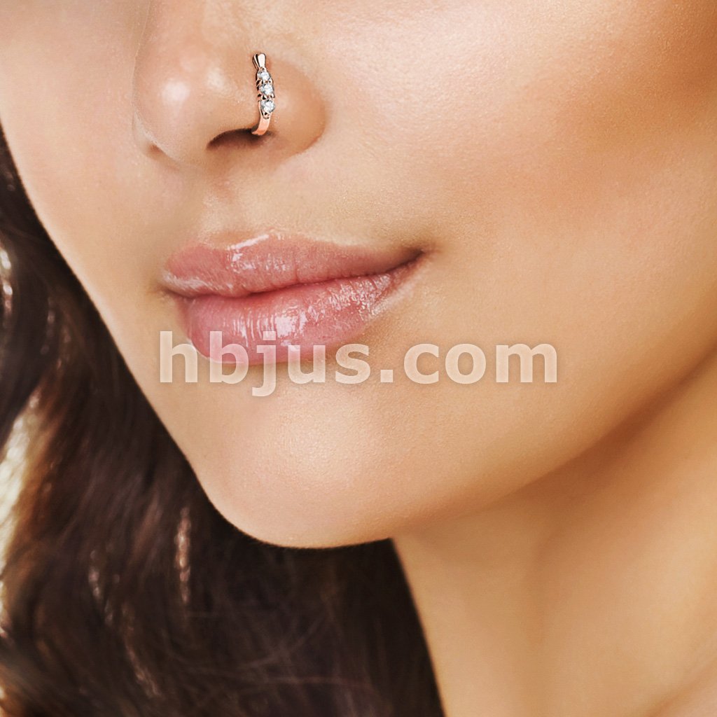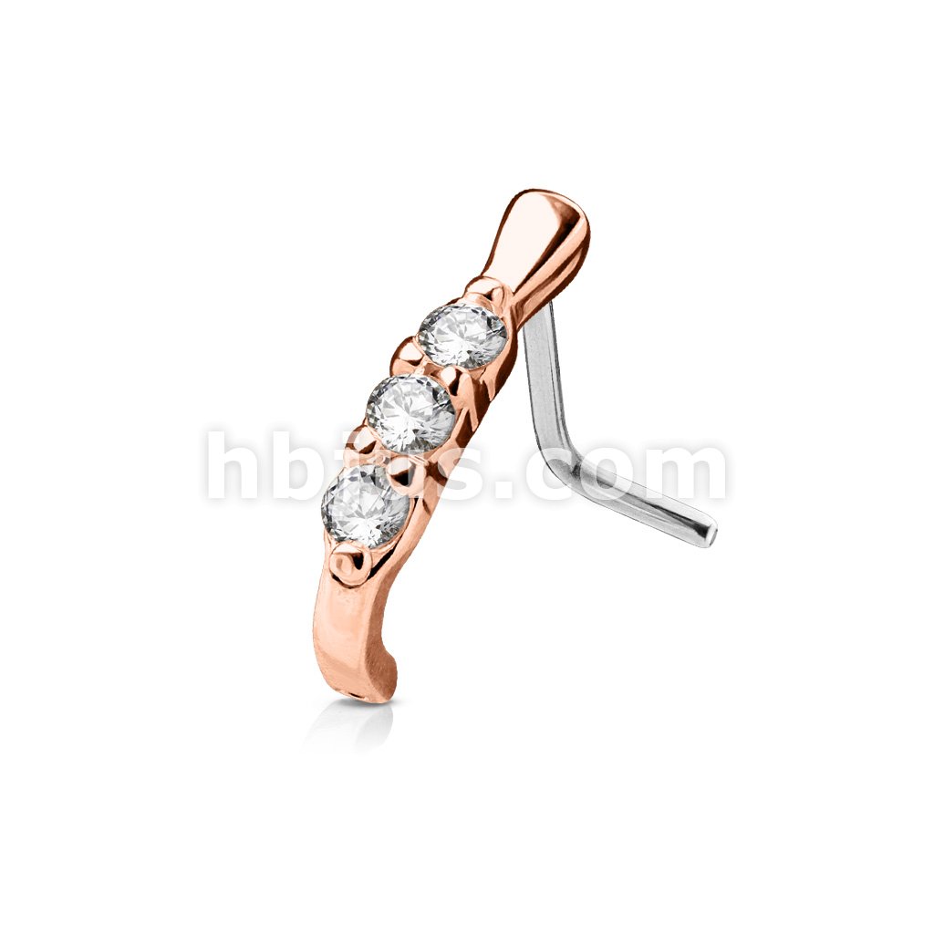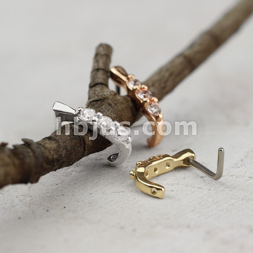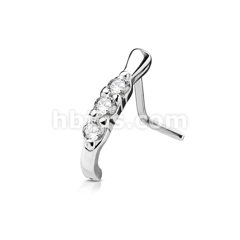 3 CZ Lined "L" Bend 316L Surgical Steel Nose Crawler Studs