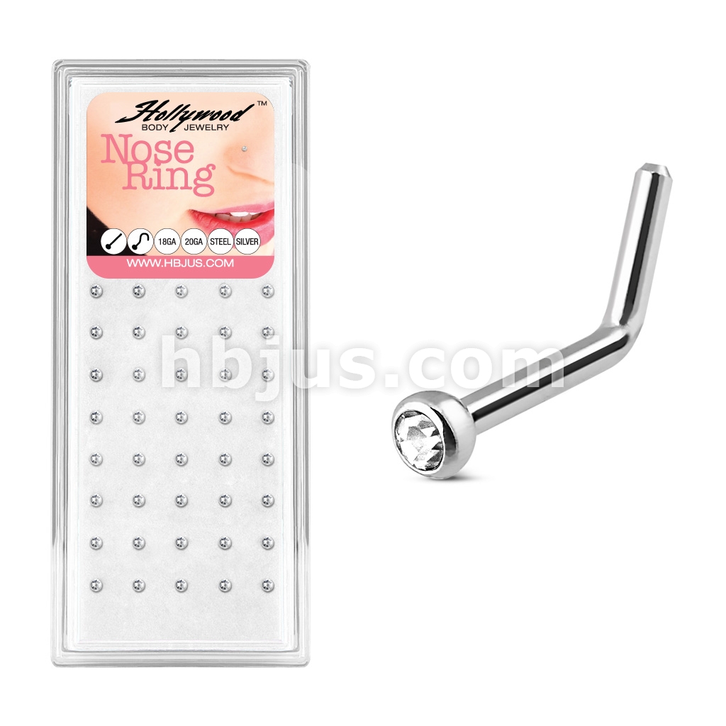 40 Pcs of 18 Gauge Clear L Bend Press Fit CZ 316L Surgical Steel Nose Bone Package