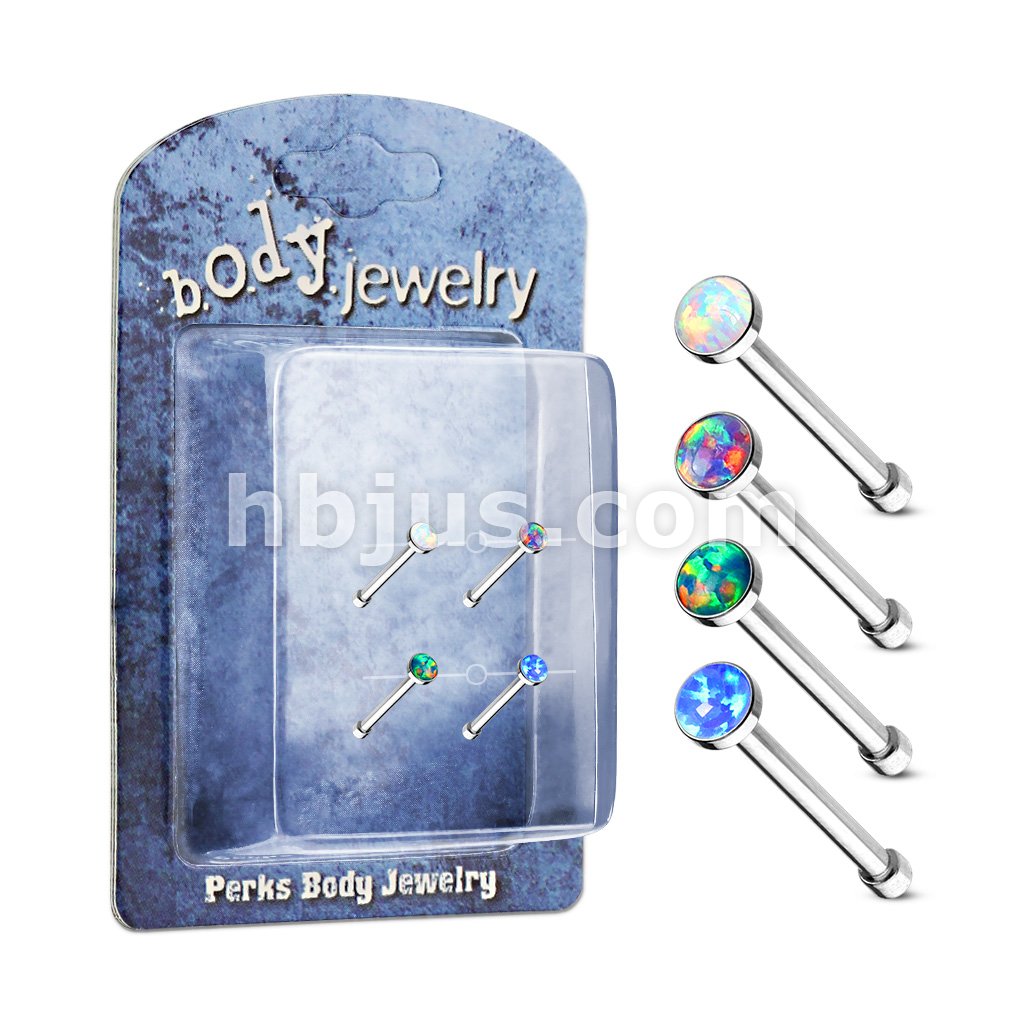 4 Pc Pre Packaged Opal Set 316L Surgical Steel Nose Bone Stud Rings Bonus Pack