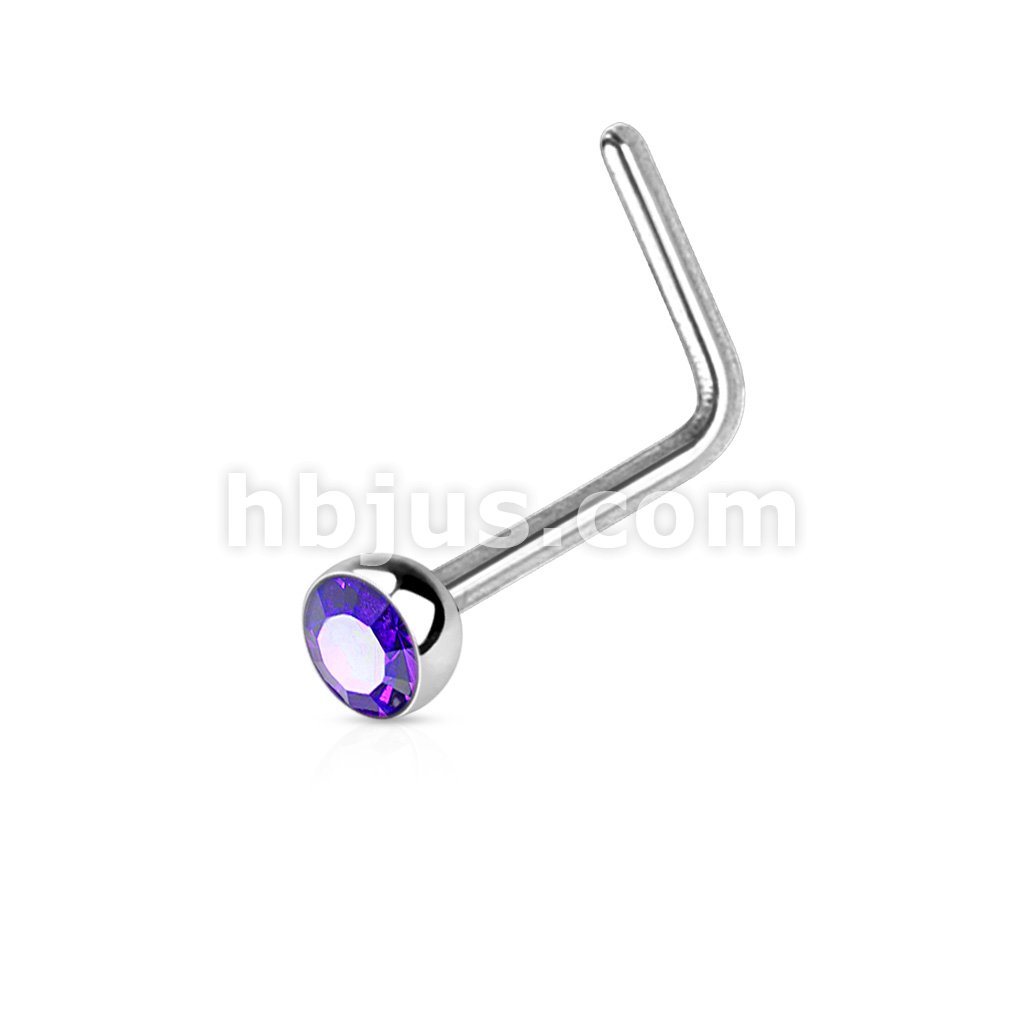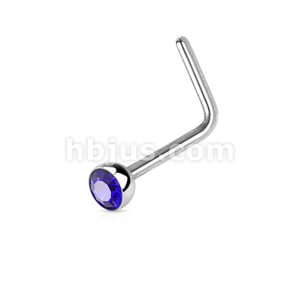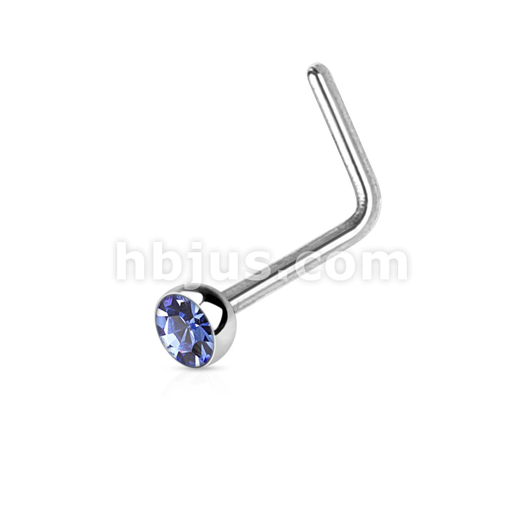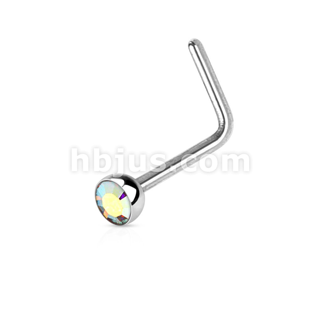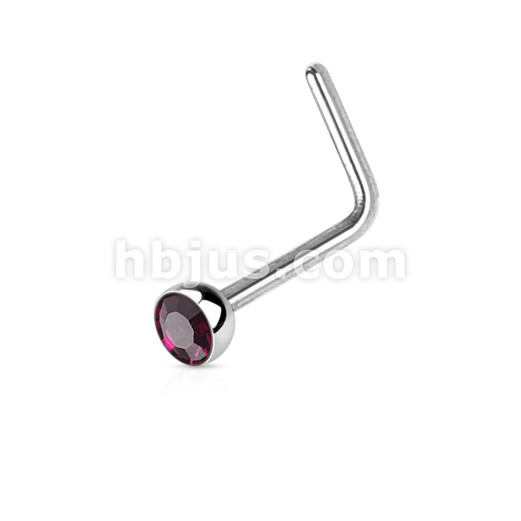 316L Surgical Steel "L" Bend Nose Stud Ring with Jewel set Half ball end