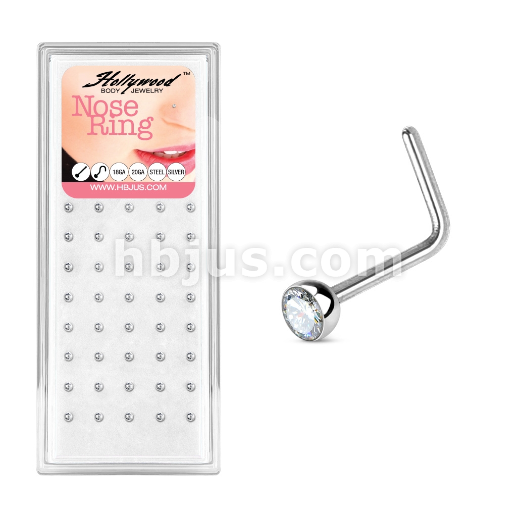 40 Pcs Clear Gem "L" Bend Jeweled Half Dome Nose Bone Package