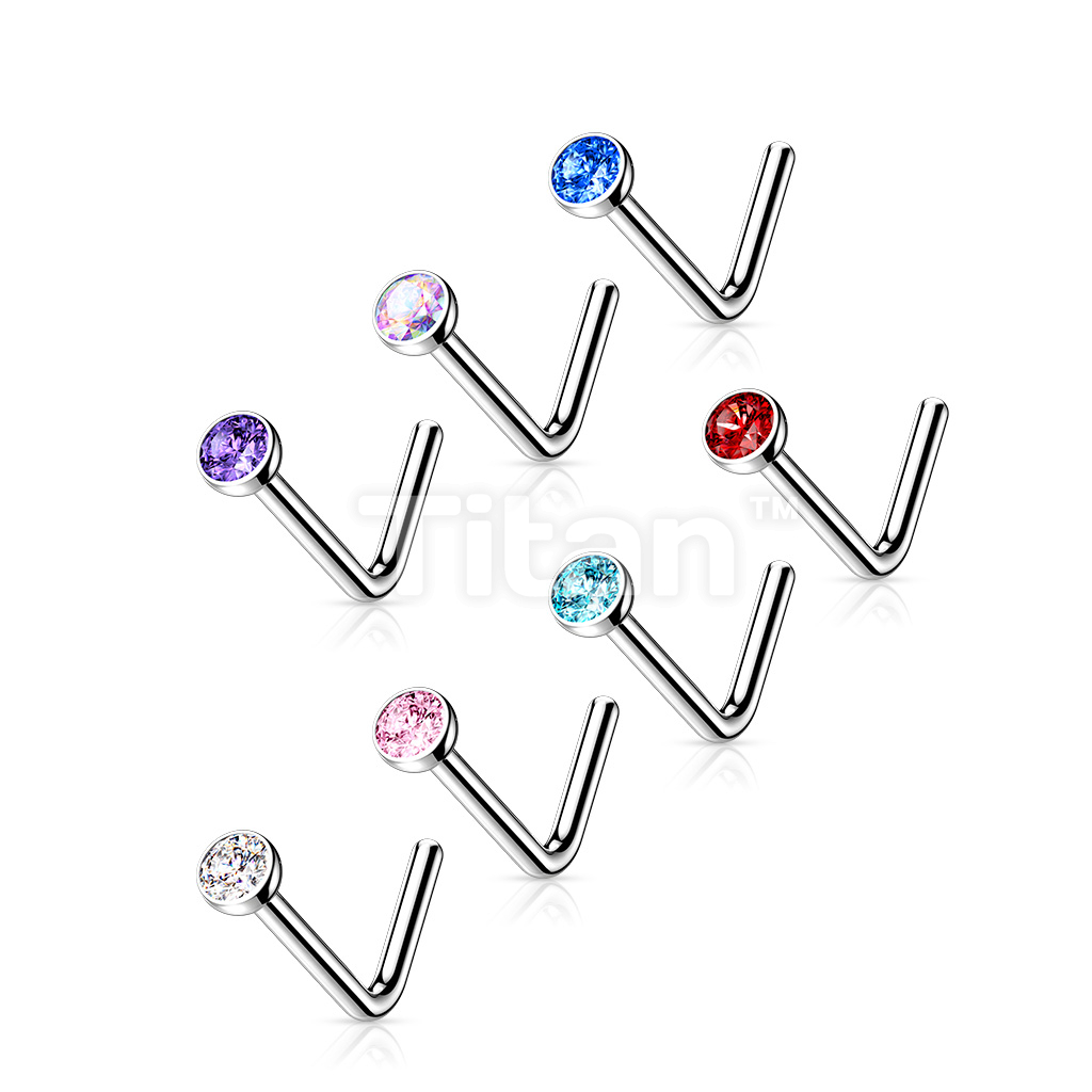 Implant Grade Titanium L Bend Nose Stud With Micro Press Fit Jewel