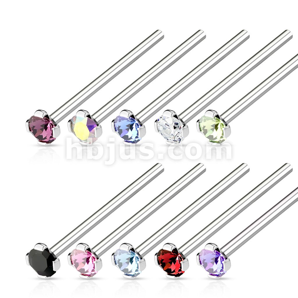 100 Pcs 316L Surgical Steel Nose Fishtail with 2mm Prong Set CZ Bulk Pack (10 pcs x 10 Colors)