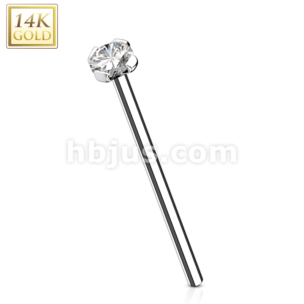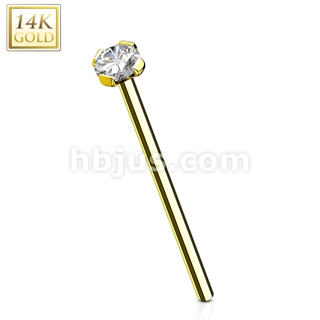 16mm Prong Set CZ Top 14 Karat Solid Gold Fish Tail Nose Ring