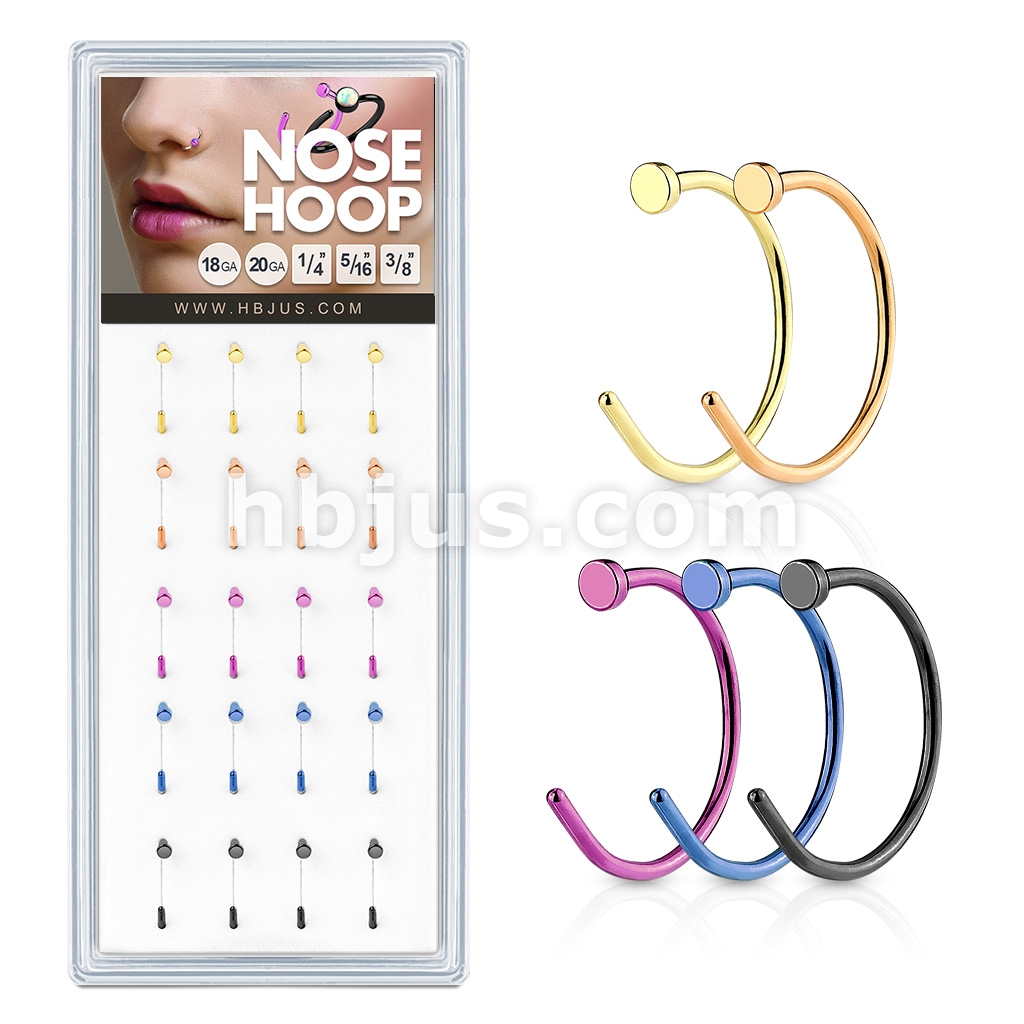 20 Pcs Pre Loaded IP Over 316L Surgical Steel Flat End Nose Hoop Rings Pack