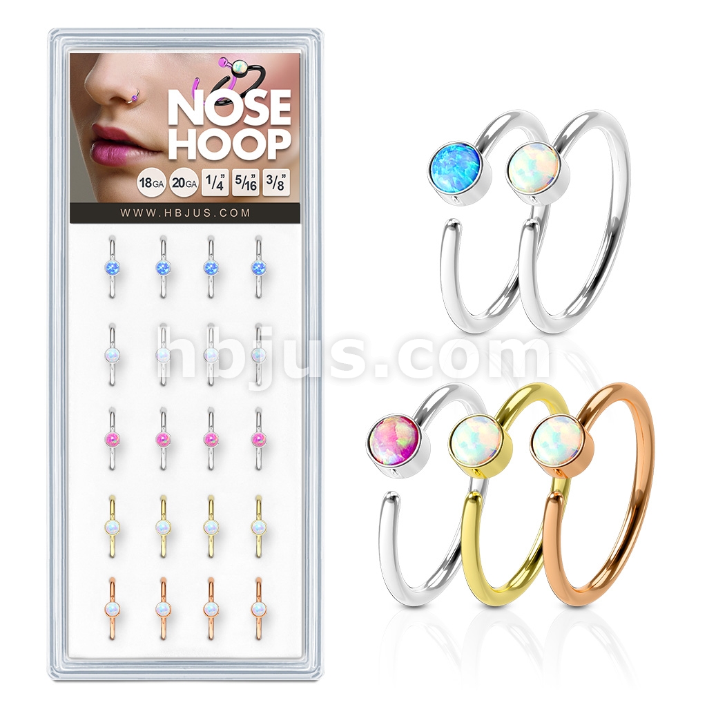 20 Pcs Pre Loaded Round Opal Set 316L Surgical Steel Nose Hoop Rings Pack