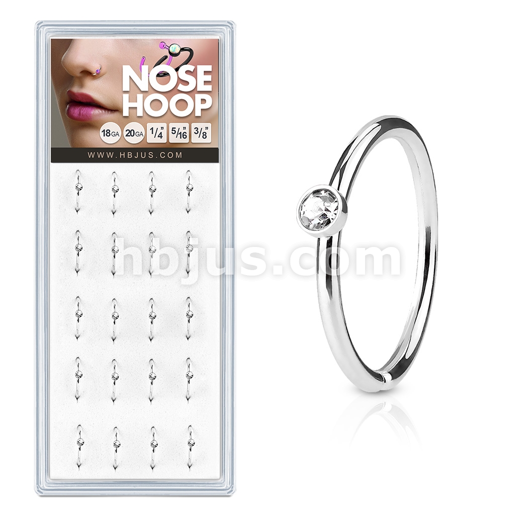 20 Pcs Pre Loaded Clear Stone Set 316L Surgical Steel Nose Hoop Rings Pack
