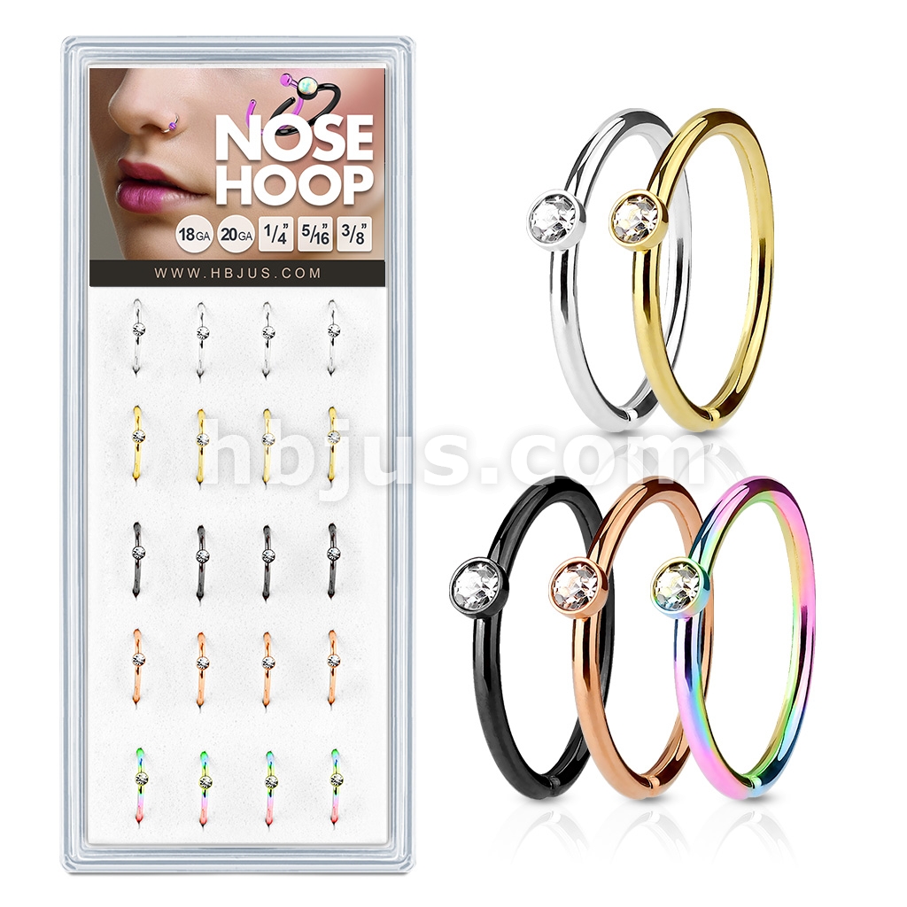 20 Pcs Pre Loaded Clear Stone Set IP Over 316L Surgical Steel Nose Hoop Rings Pack