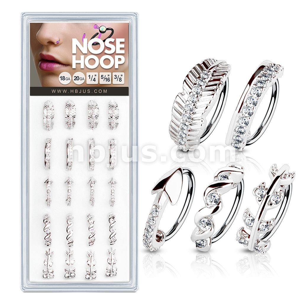 20 Pcs Pre Loaded Mixed Styles 316L Surgical Steel Nose Hoop Rings Pack (5 Styles x 4 Pcs)