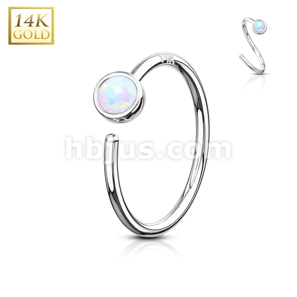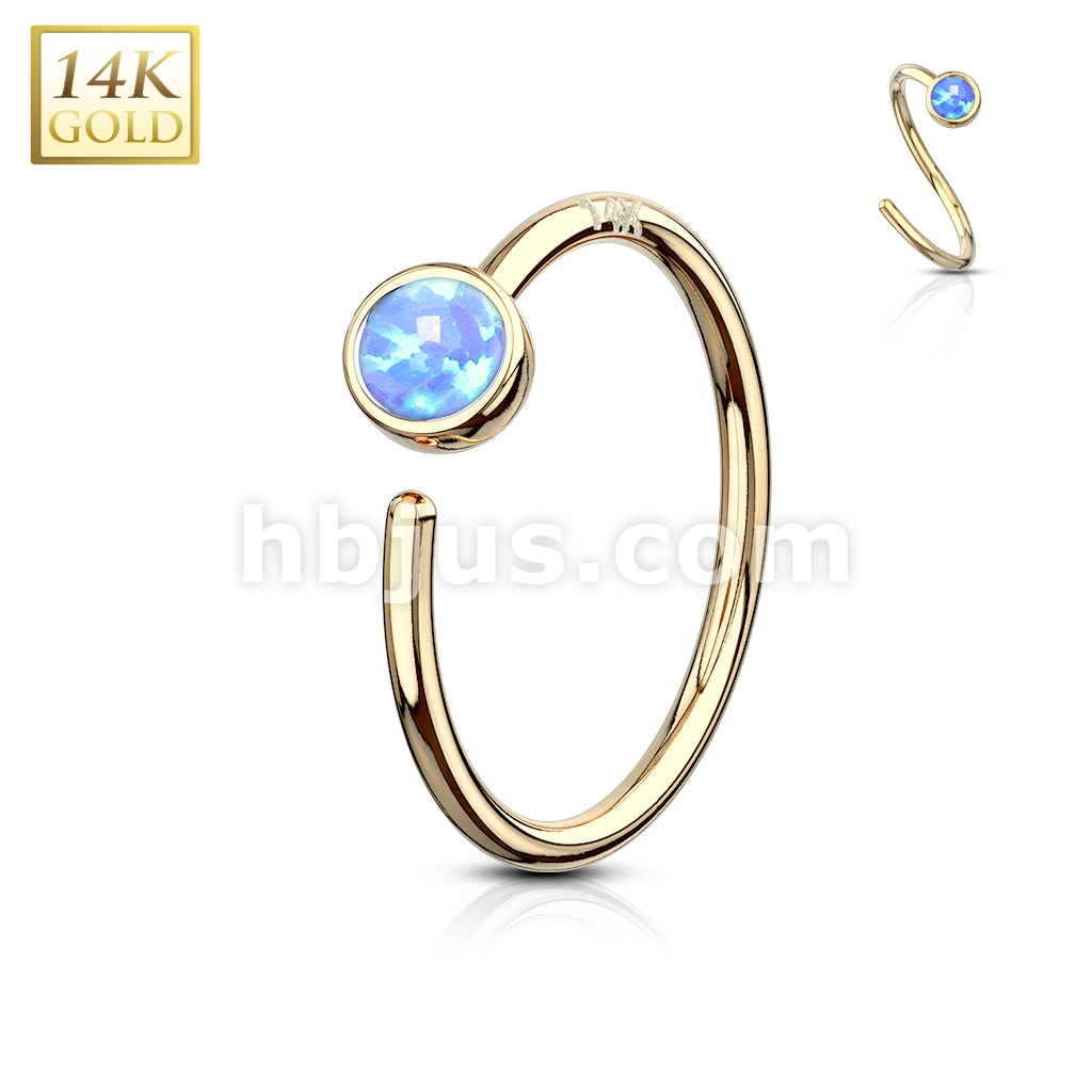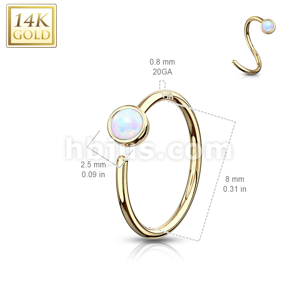 14 Kt. Gold Nose Hoop with Bezel Set Opal