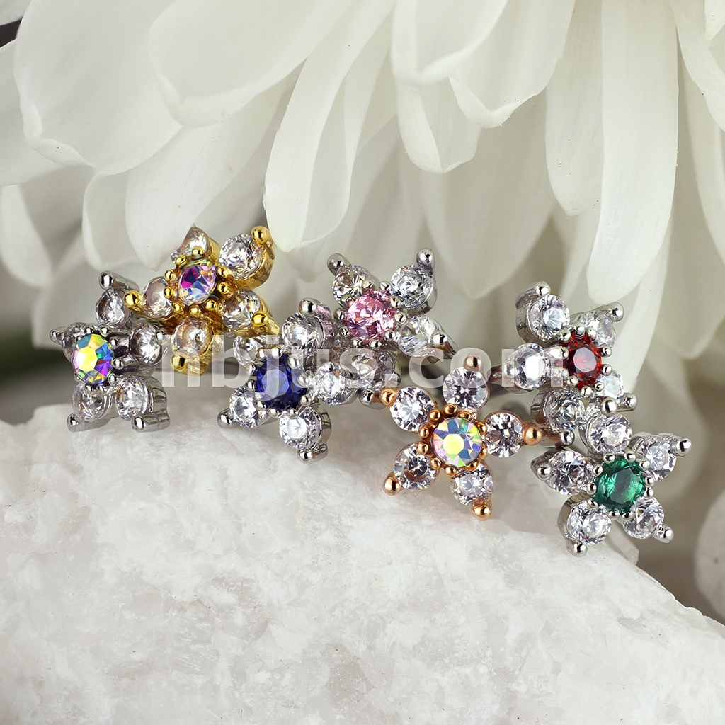 6 CZ Flower Top 316L Surgical Steel Nose Bone Stud Rings