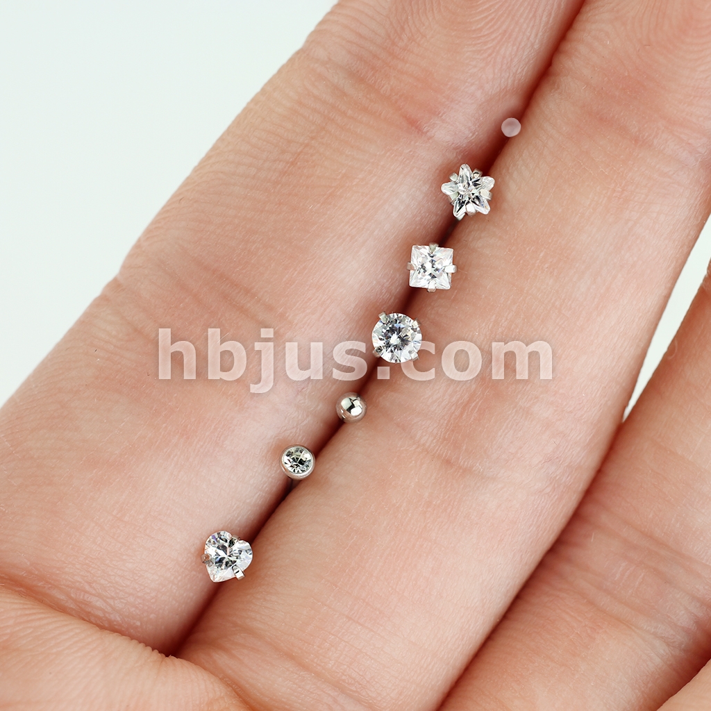 20GA Square CZ L Bend Nose Stud