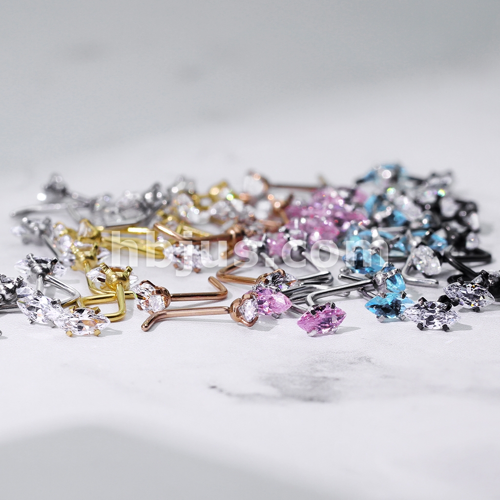 Marquise CZ Top 316L Surgical Steel "L" Bend Nose Stud Rings