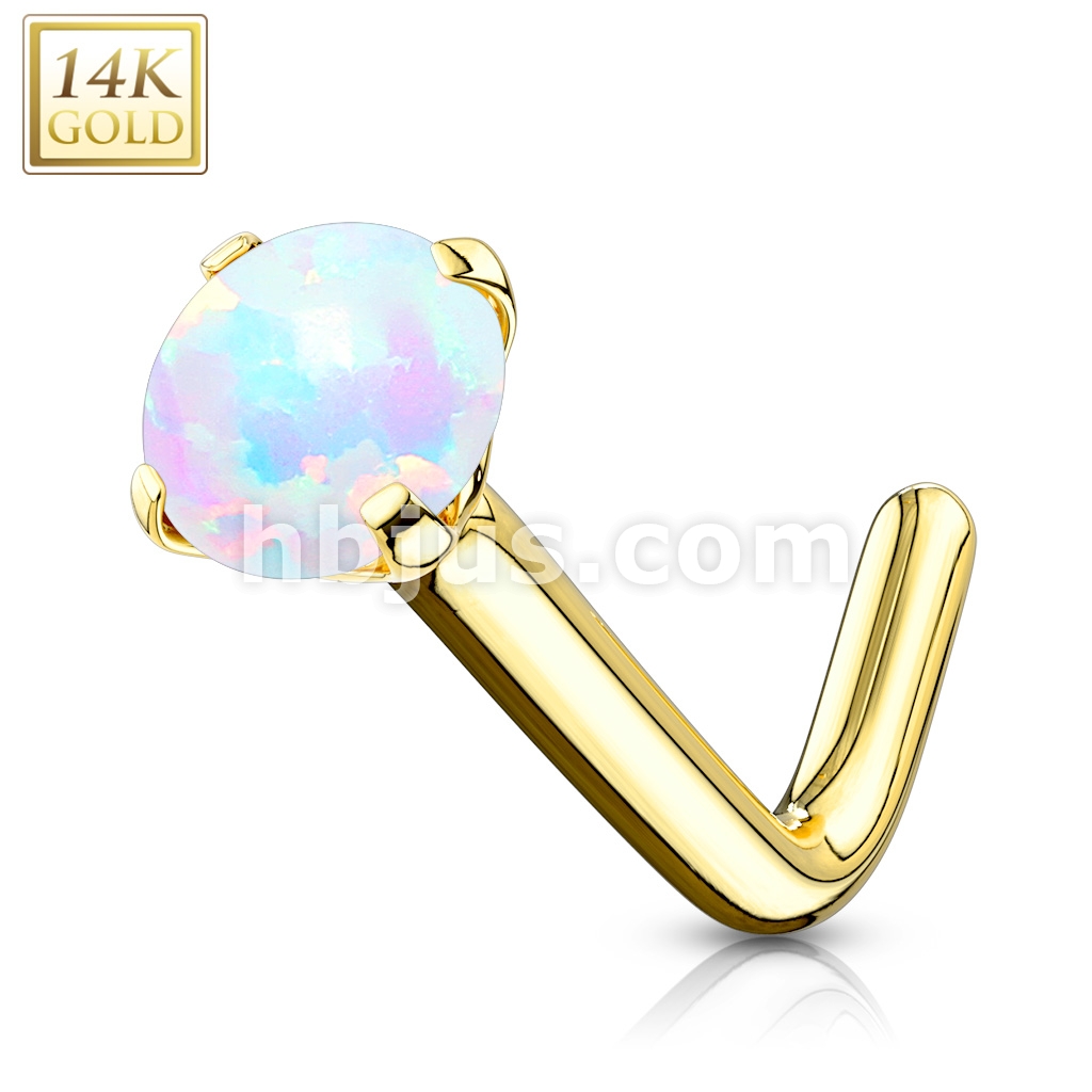 14Kt. Gold L Bend Nose Ring with Prong Set Opal