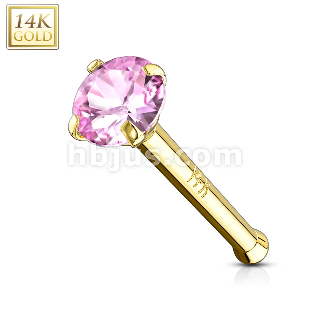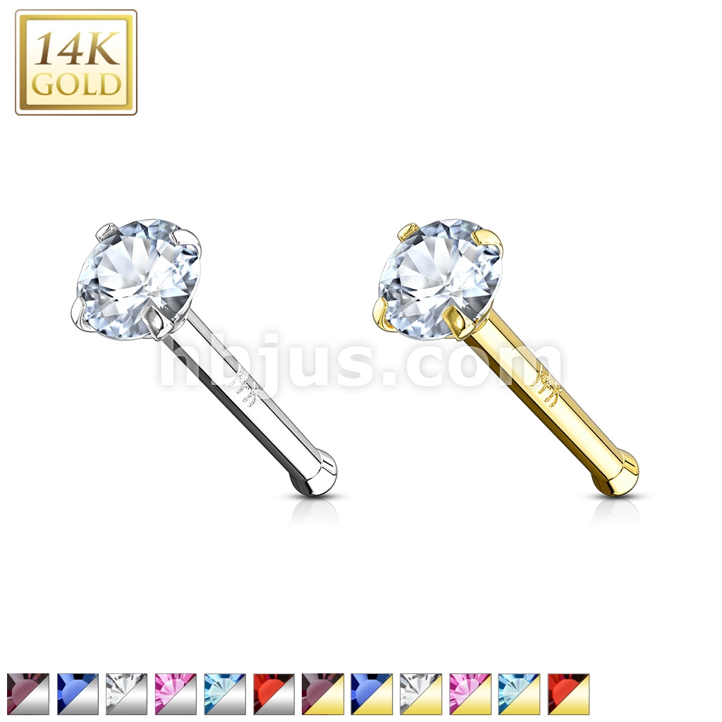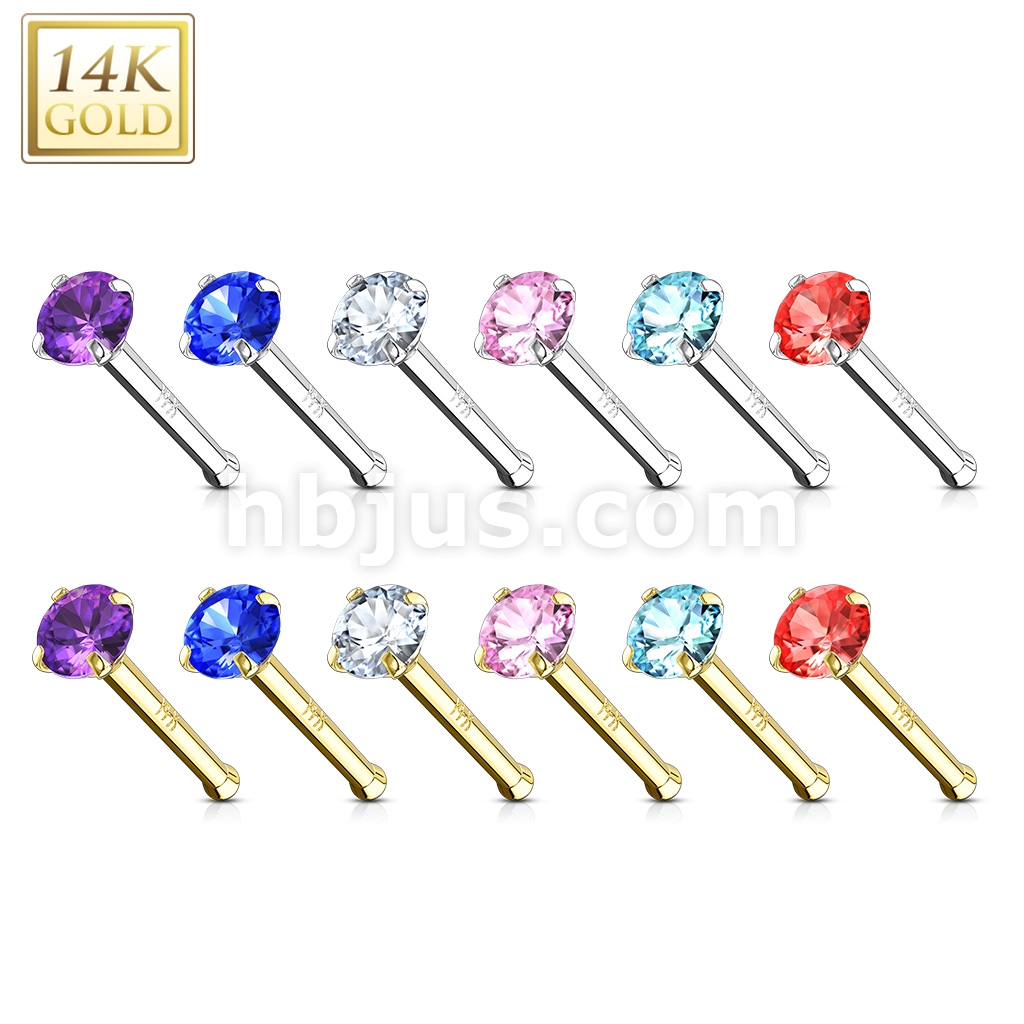 14K Solid Gold Prong Set CZ Nose Stud Ring