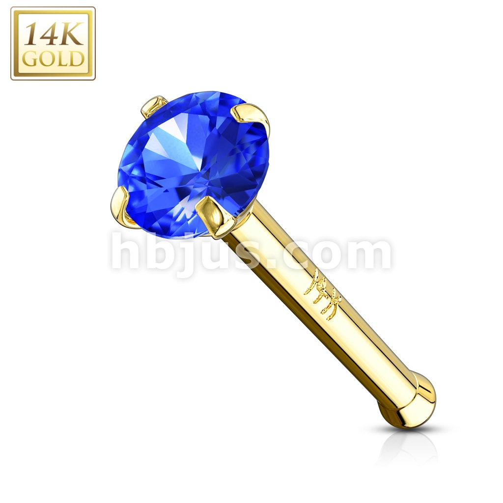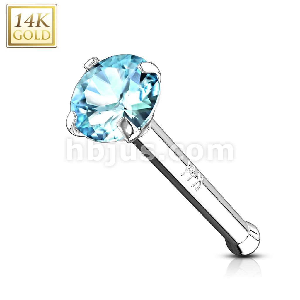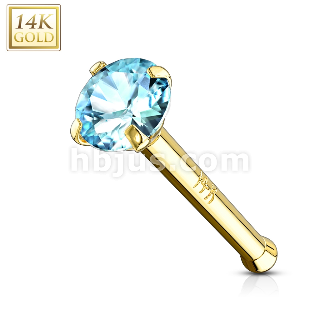 14K Solid Gold Prong Set CZ Nose Stud Ring