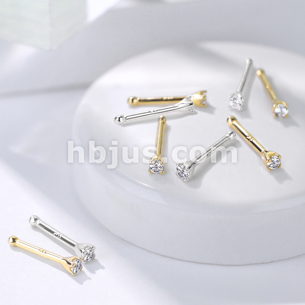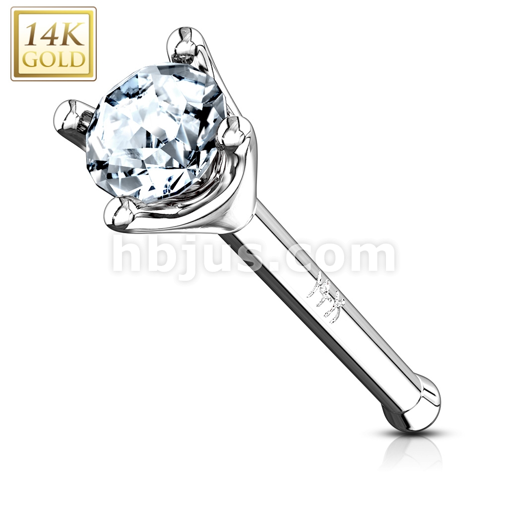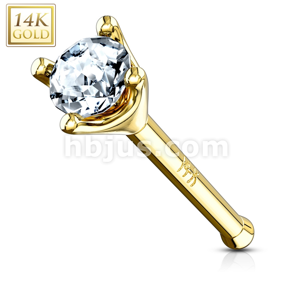 Clear 1.5mm Prong Set CZ Nose Stud Ring 14 Karat Solid Gold