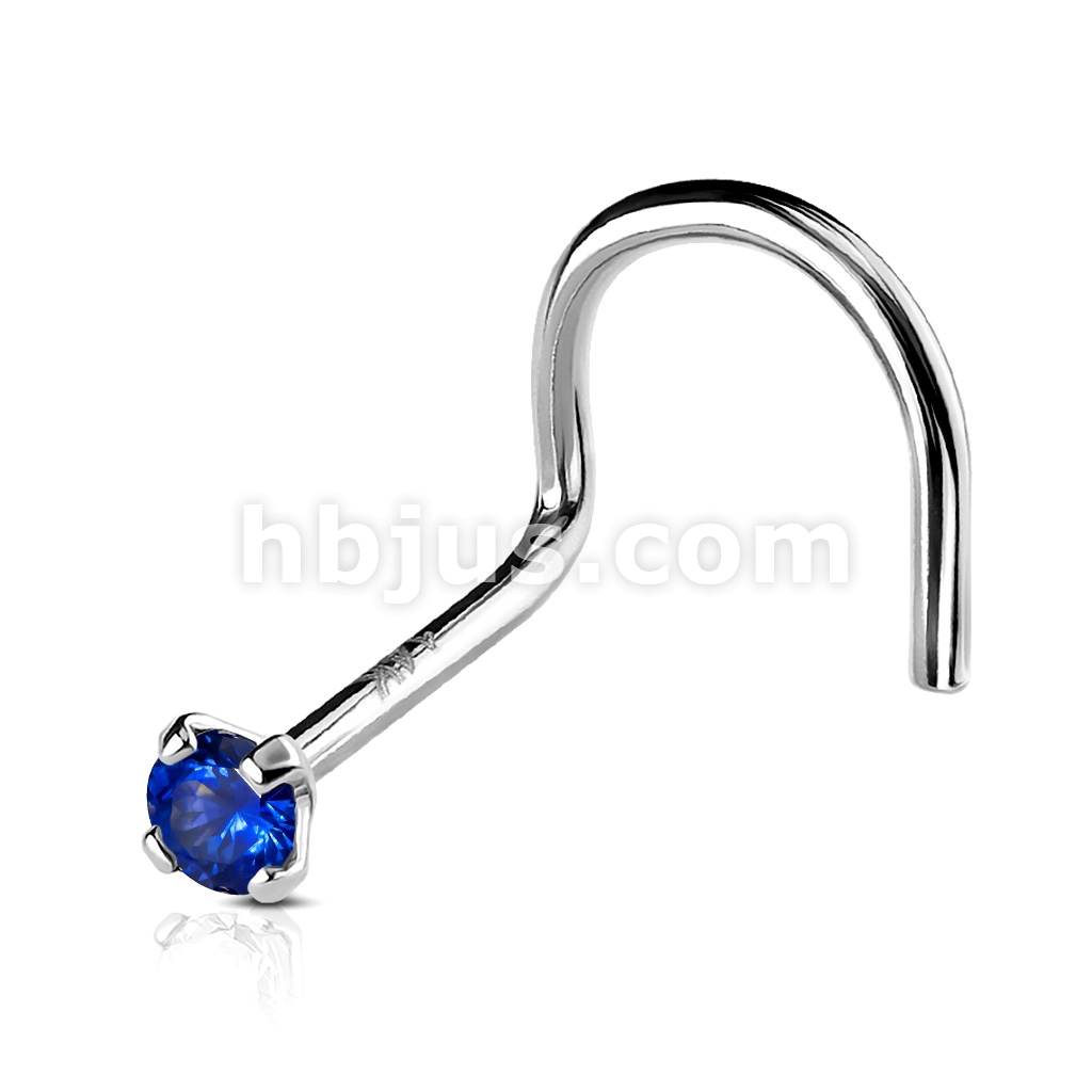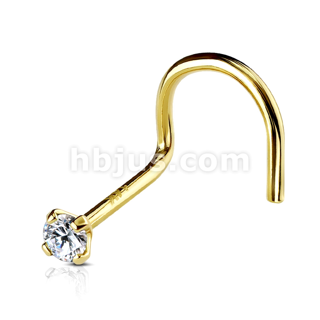 14K Solid Gold Prong Set 2mm CZ Nose Screw Ring