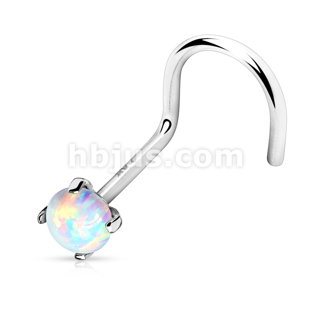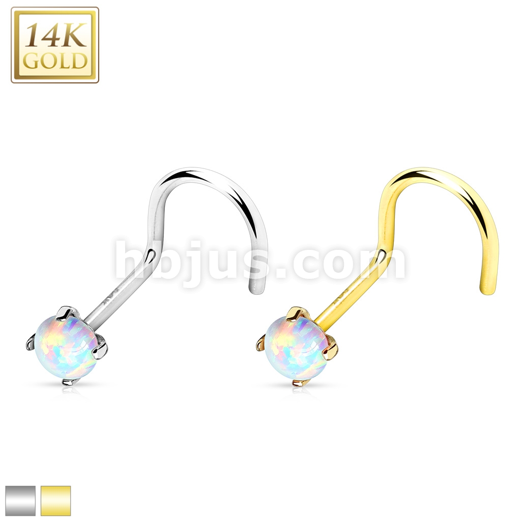 Prong Set Opal Stone Top 14K Gold Nose Screw