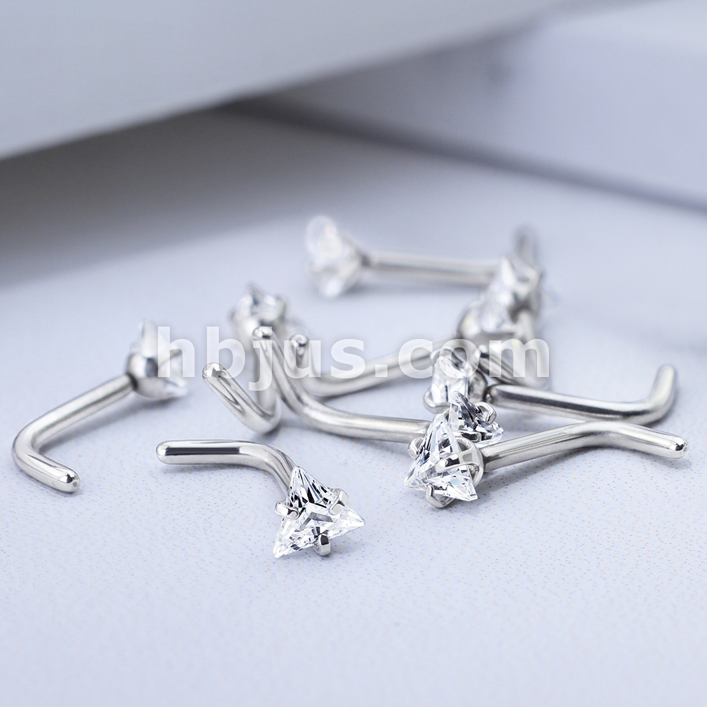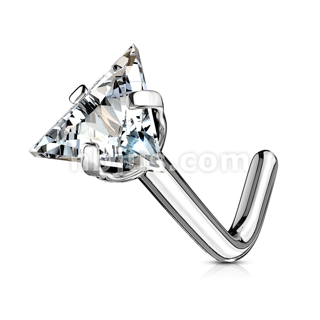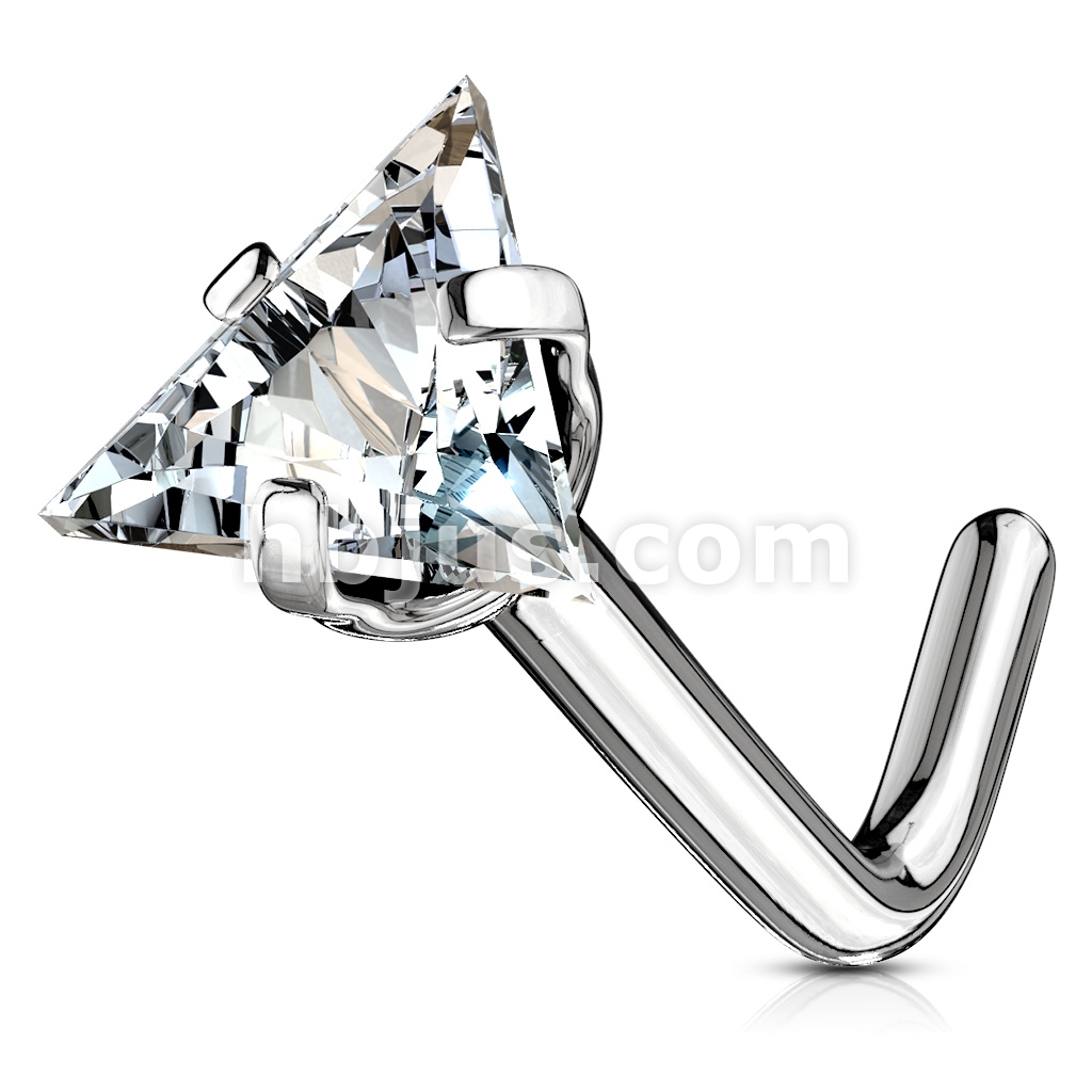 Triangle CZ Top 316L Surgical Steel L Bend Nose Stud Rings