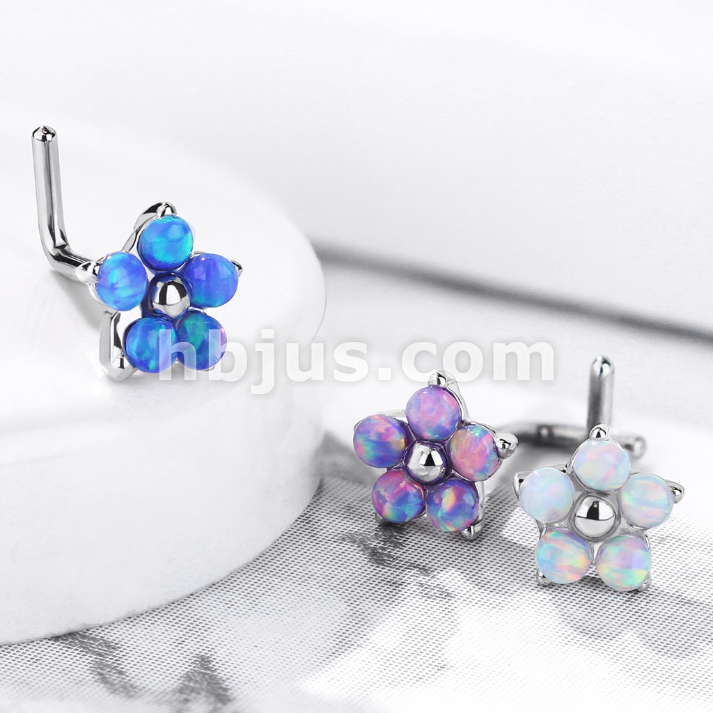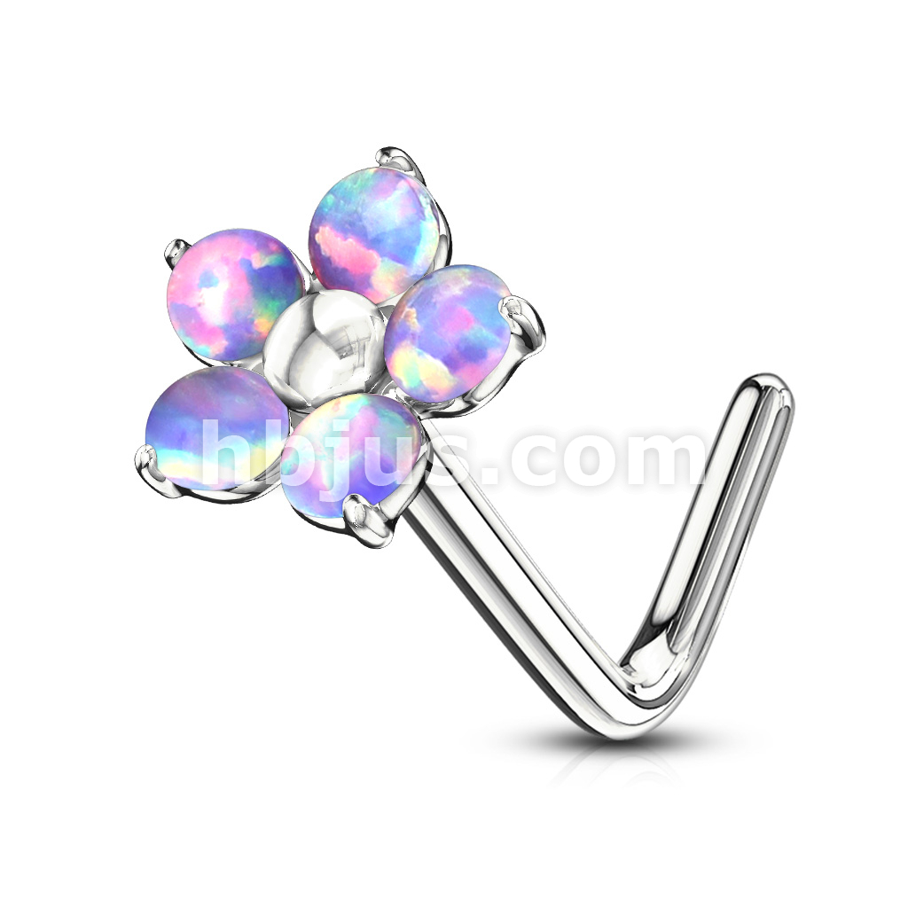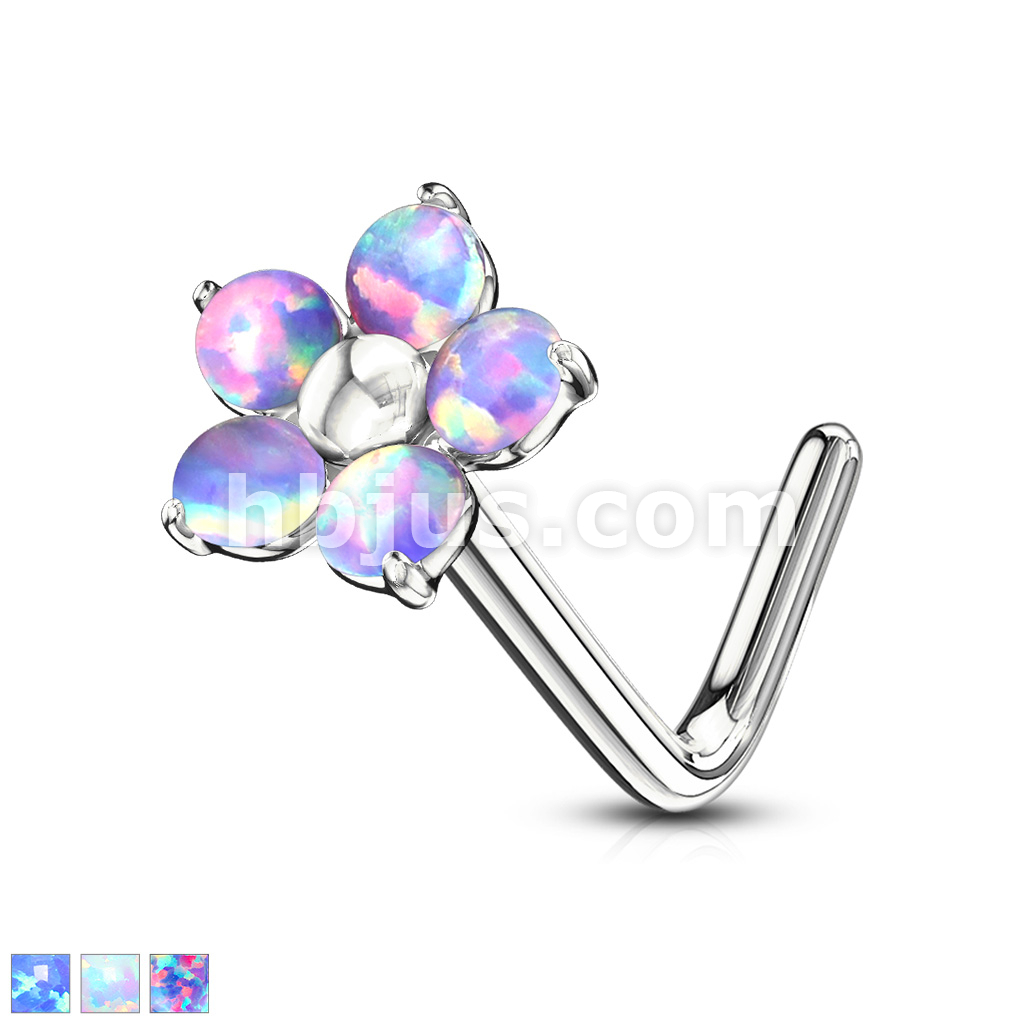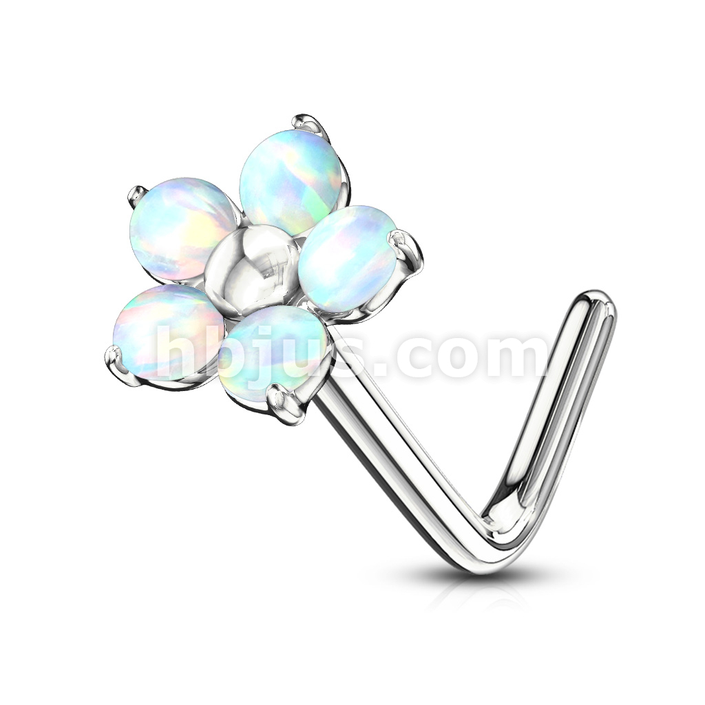 Flower with 5 Opal Petals 316L Surgical Steel L Bend Nose Stud Rings