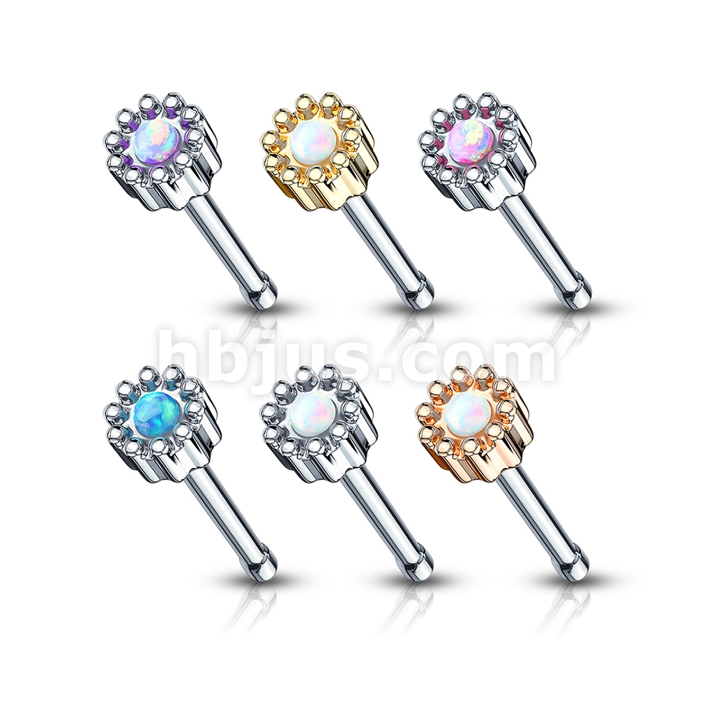 24 Pcs Pre Loaded Box of Opal Set Round Top 316L Surgical Steel Nose Stud Rings Pack (6 Colors x 4 Pcs)