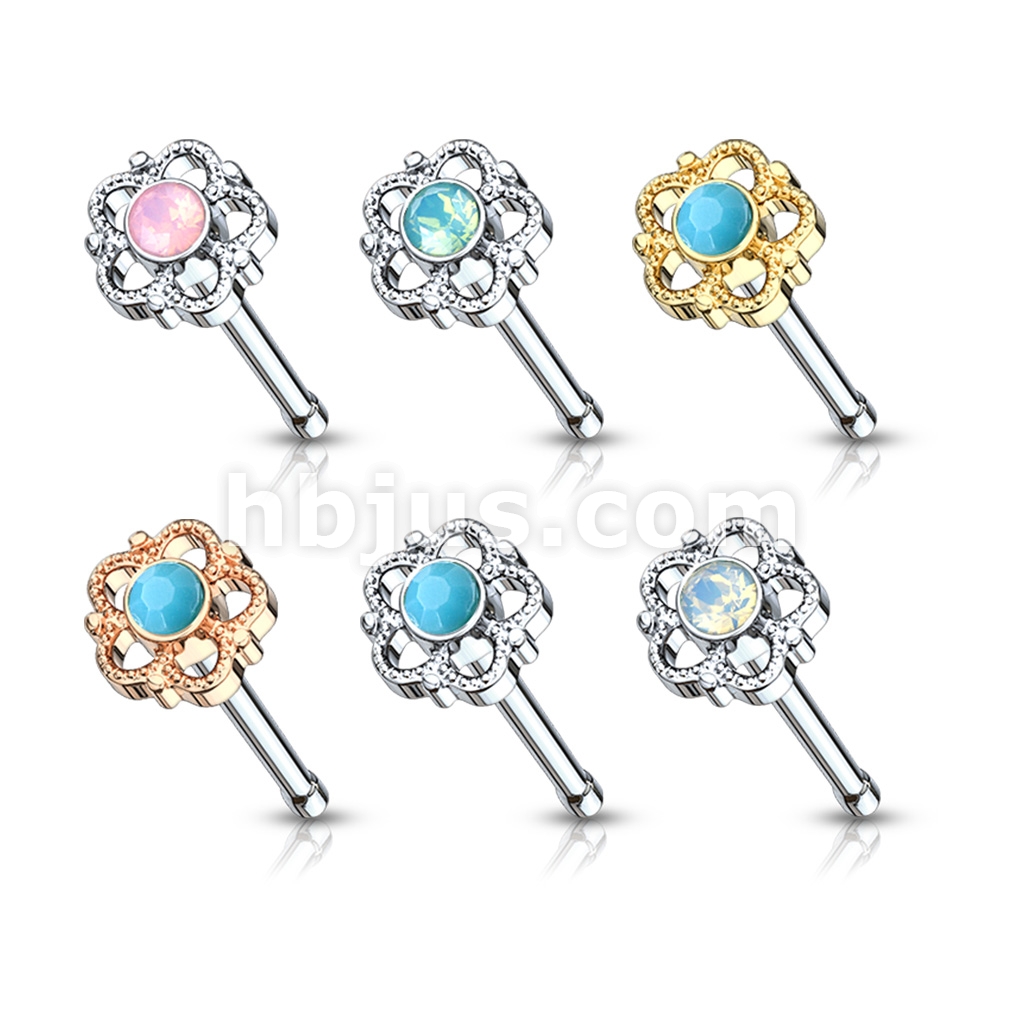 24 Pcs Pre Loaded Box of Turquoise and Opalite Centered Filigree Flower Top 316L Surgical Steel Nose Stud Rings Pack (6 Colors x 4 Pcs)