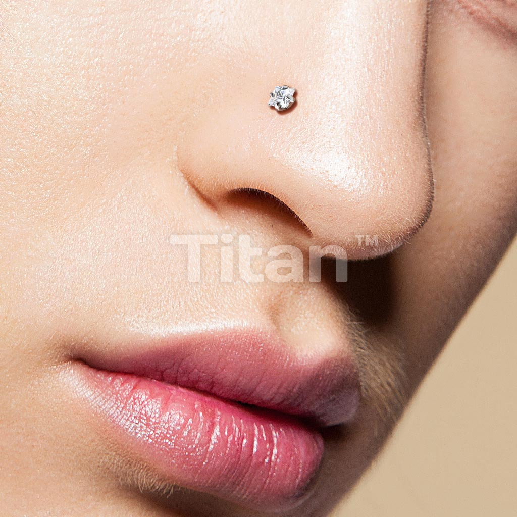 Implant Grade Titanium L Bend Nose Stud With Prong Set Square CZ