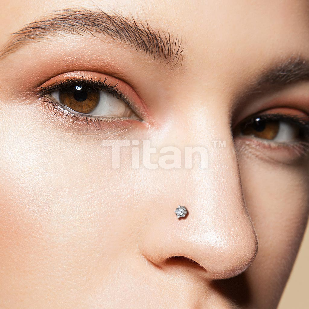 Implant Grade Titanium L Bend Nose Stud With Prong Set Star CZ
