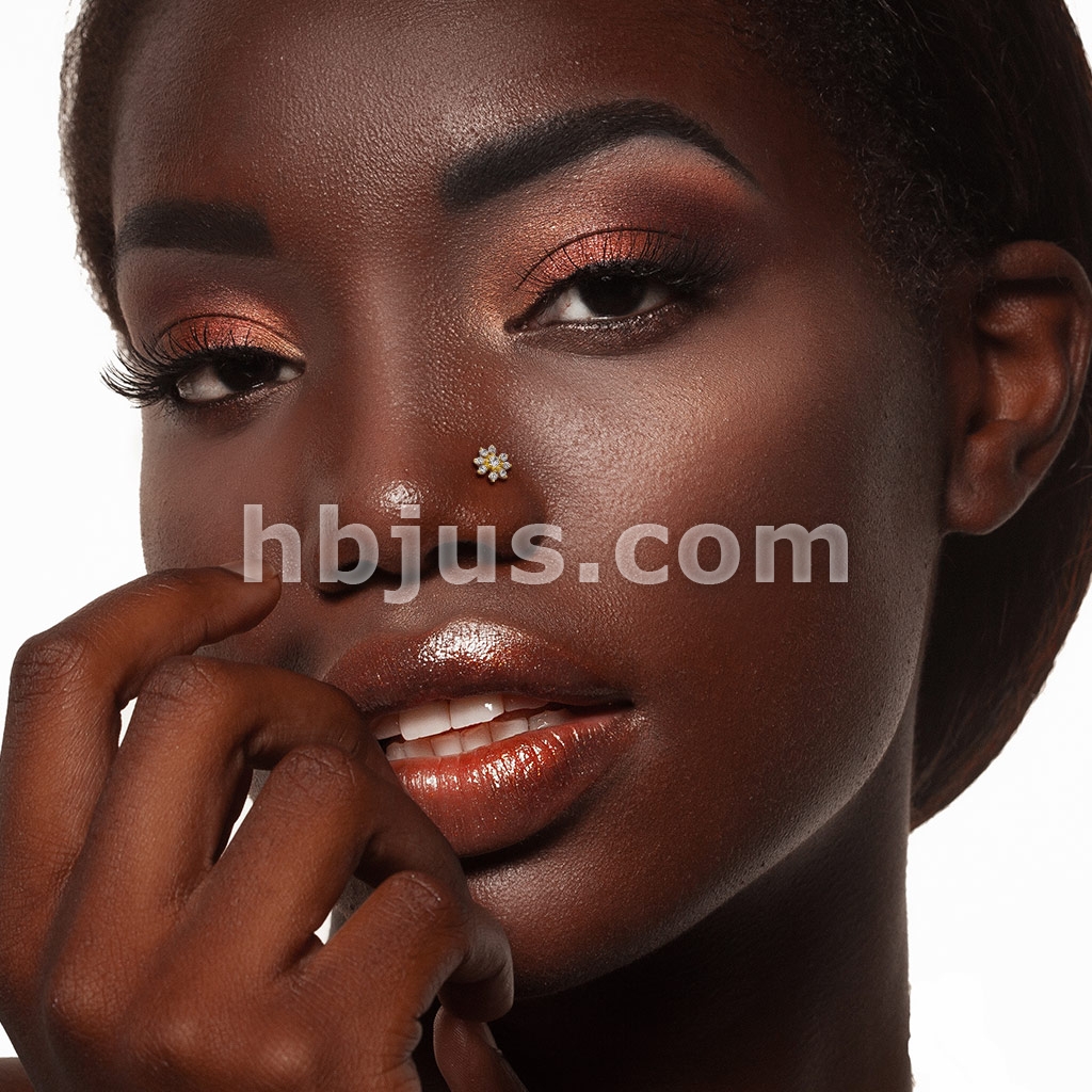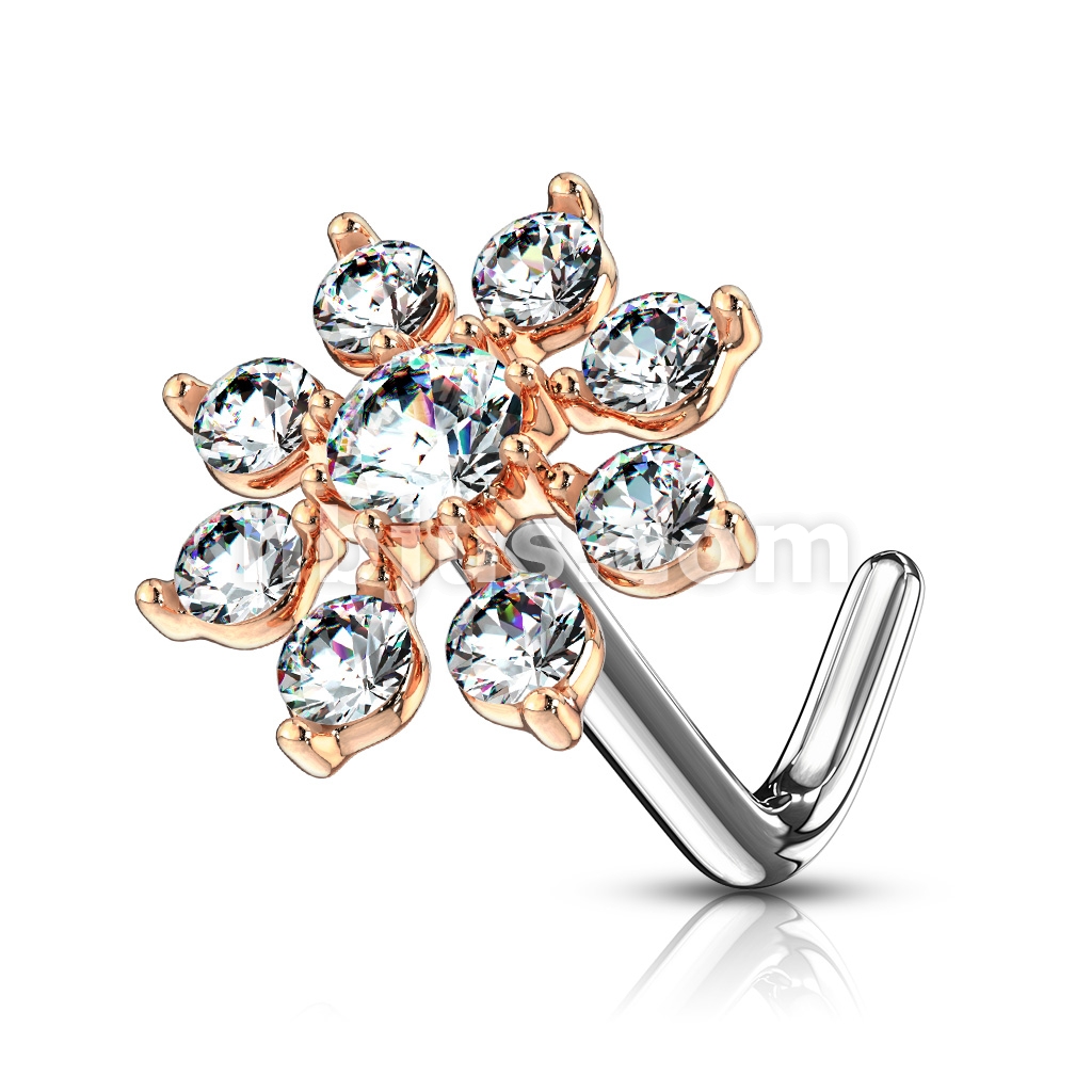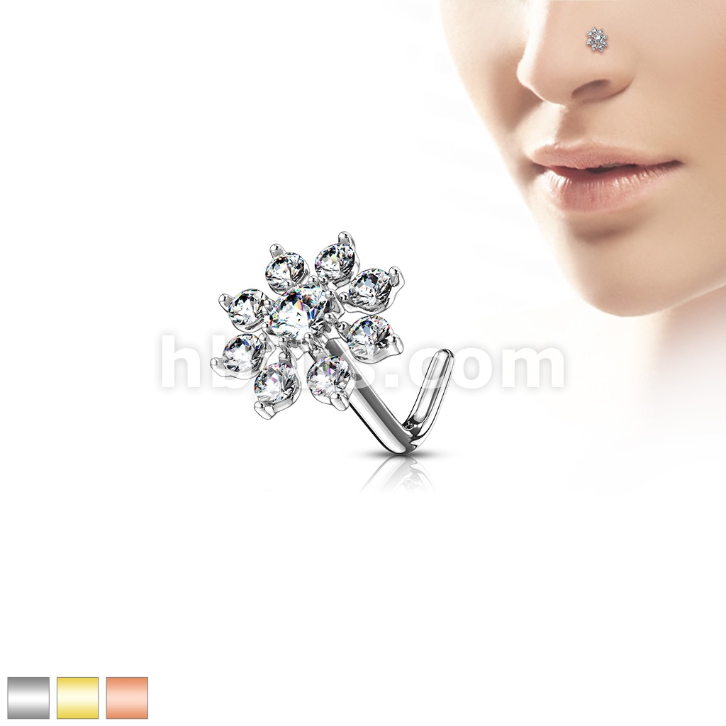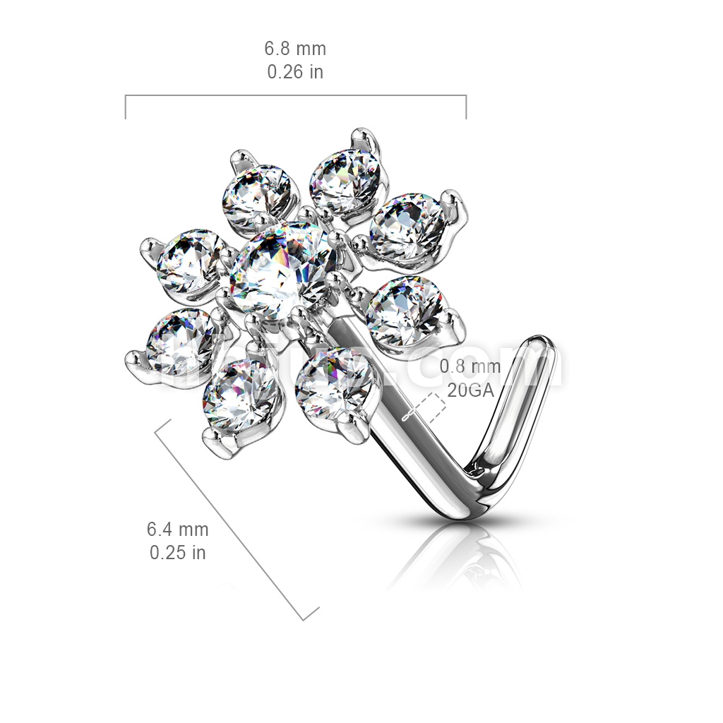 Double Tiered CZ Starburst Top 316L Surgical Steel L Bend Nose Stud Rings