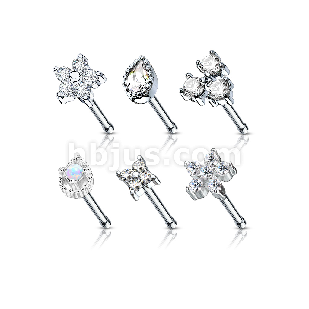 24 Pcs Pre Loaded Box of Mixed Styles 20ga 316L Surgical Steel Nose Stud Rings Pack (6 Styles x 4 Pcs)