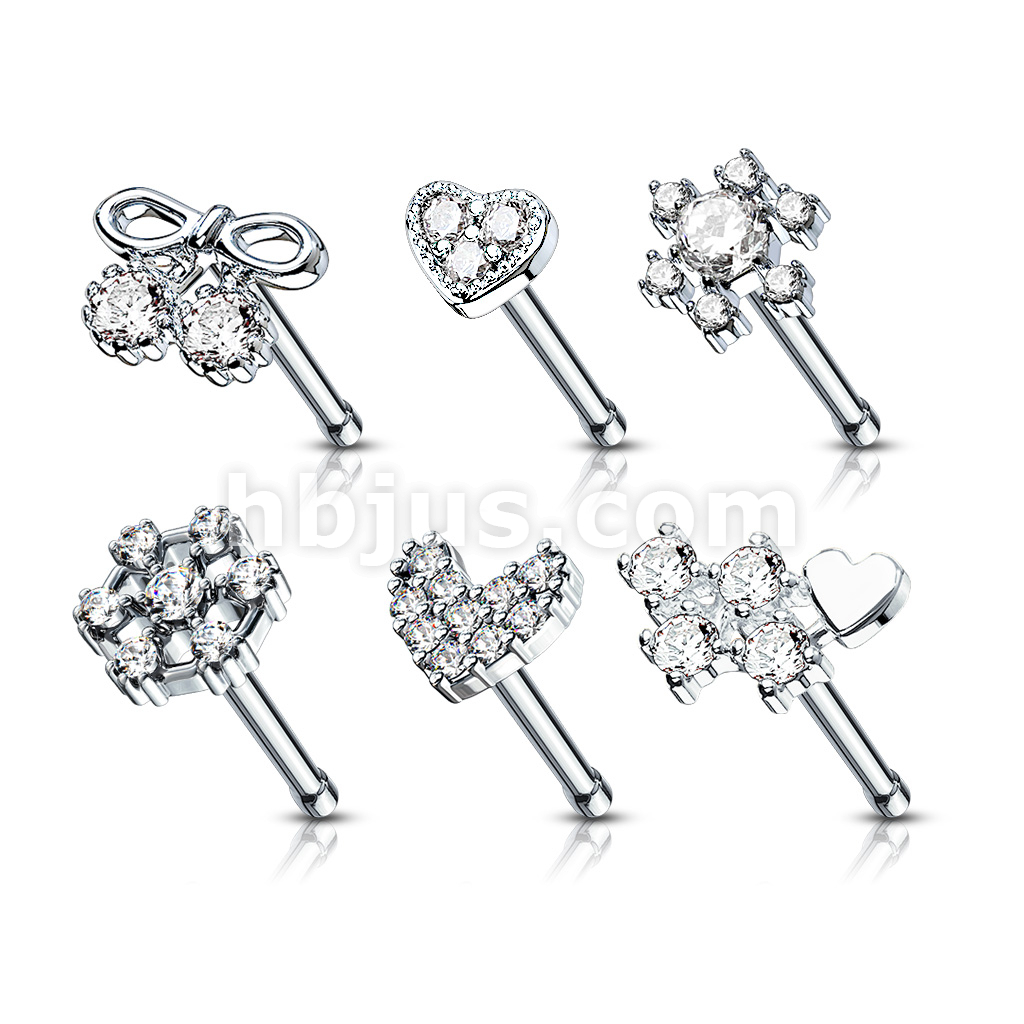 24 Pcs Pre Loaded Box of Mixed Styles 20ga 316L Surgical Steel Nose Stud Rings Pack (6 Styles x 4 Pcs)