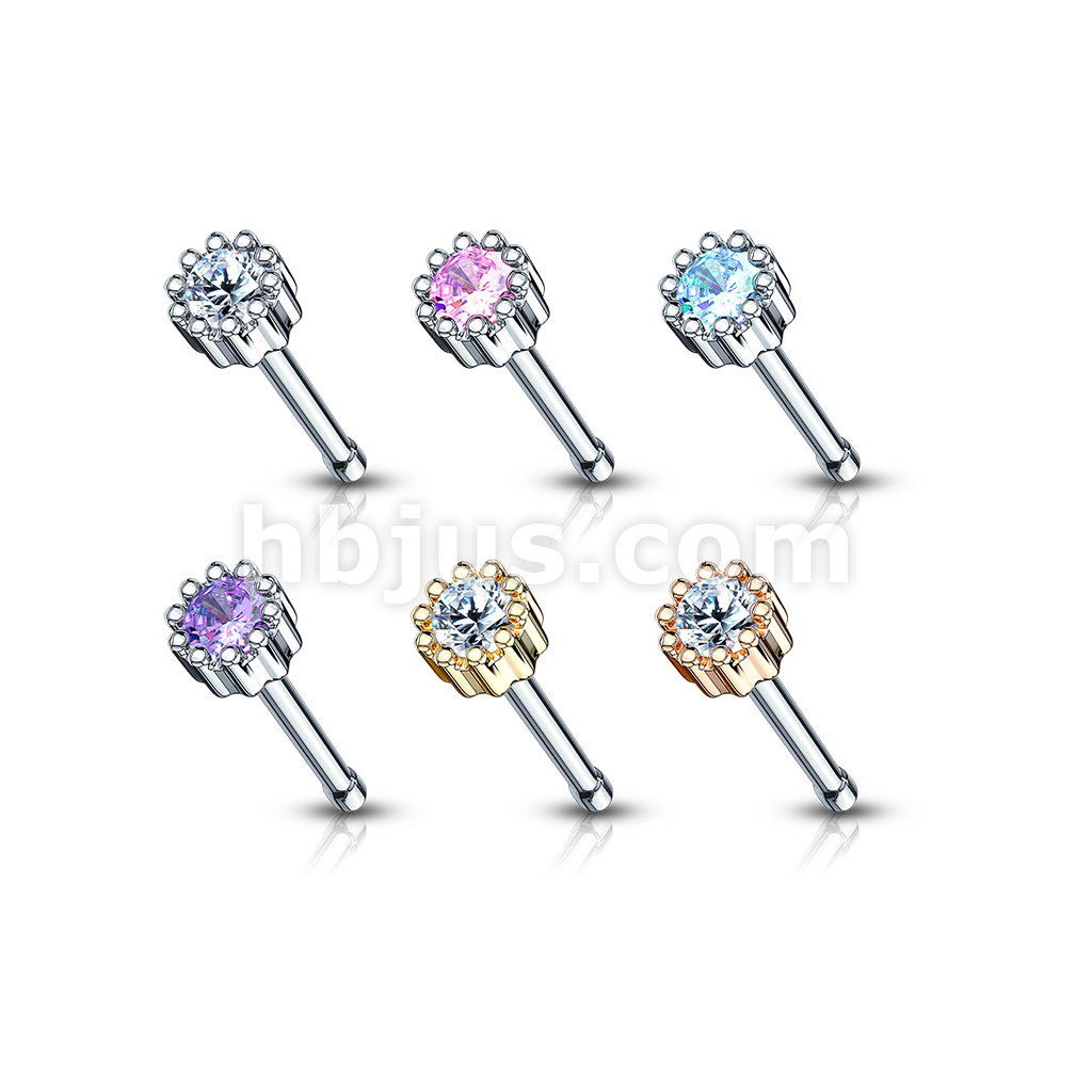 24 Pcs Pre Loaded Box of Crown Set Round Stone 20ga 316L Surgical Steel Nose Stud Rings Pack (6 Colors x 4 Pcs)