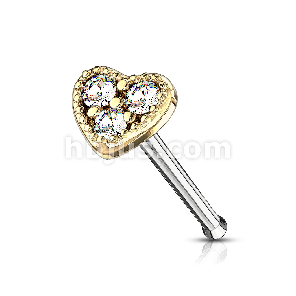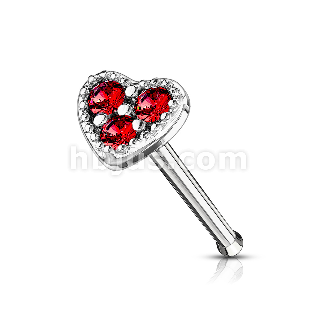 CZ Set Heart Top 316L Surgical Steel Nose Stud Rings