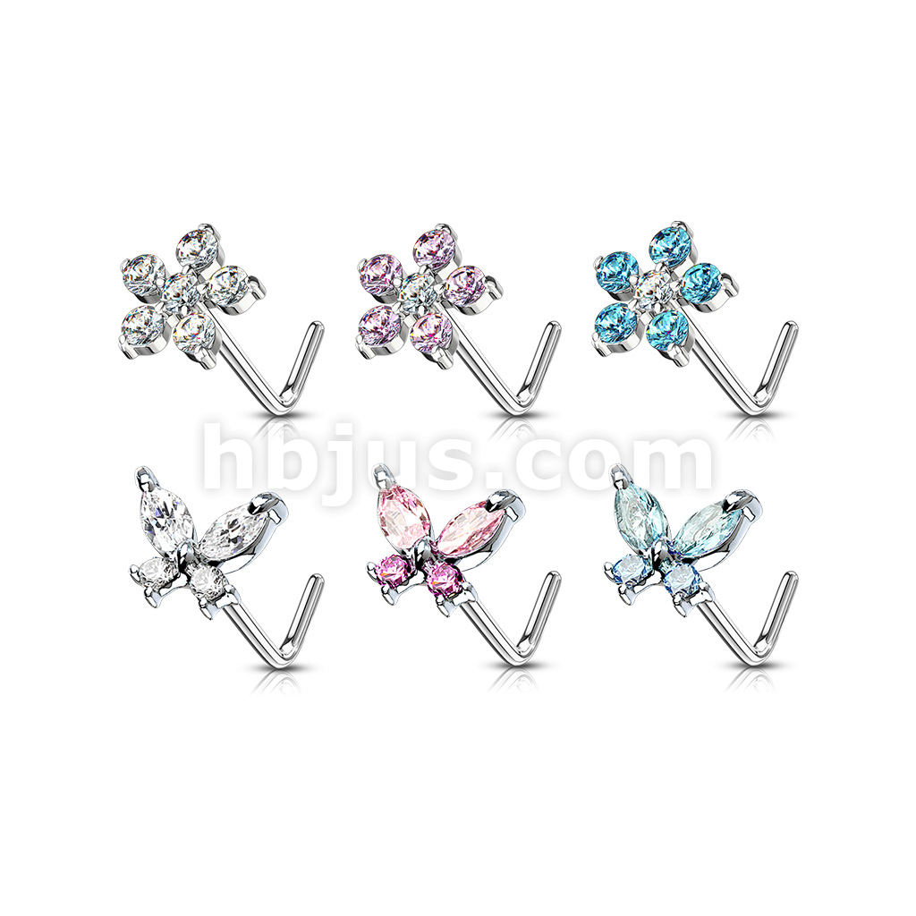 24 Pcs Flower and Butterfly Themed "L" Bend 20 Gauge 316L Surgical Steel Nose Bone Package