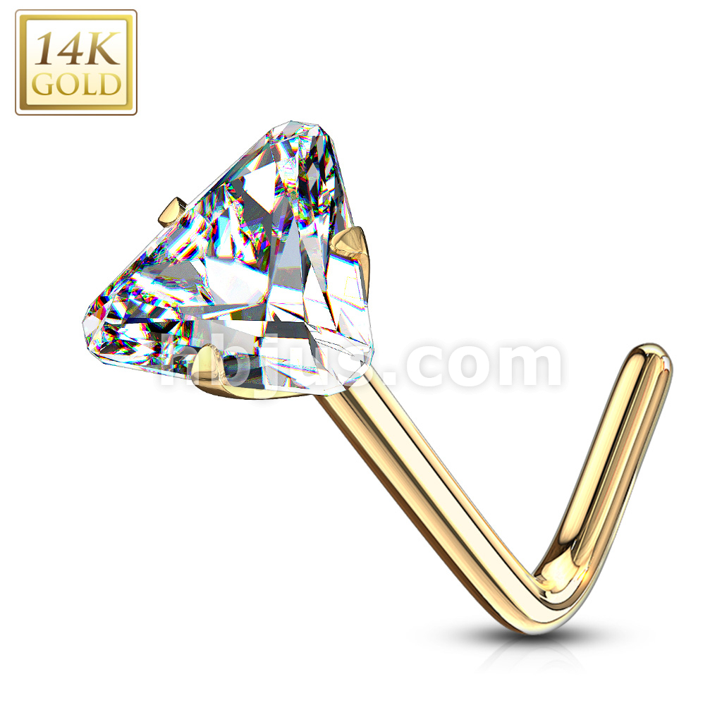 14Kt. Gold L Bend Nose Ring with Prong Set Triangle CZ