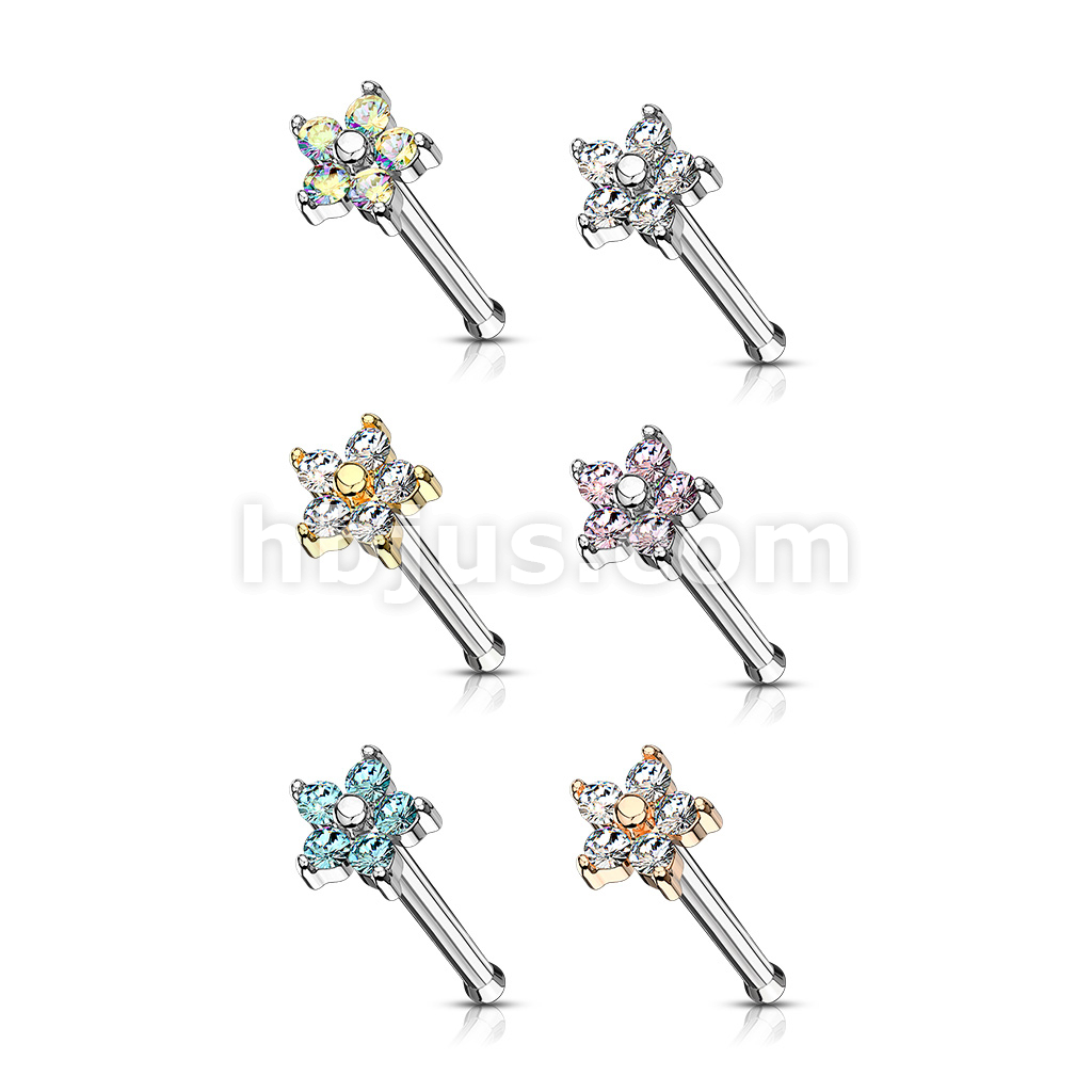 24 Pcs Pre Loaded Box of CZ Flower Top 20ga 316L Surgical Steel Nose Stud Rings Pack (6 Colors x 4 Pcs)