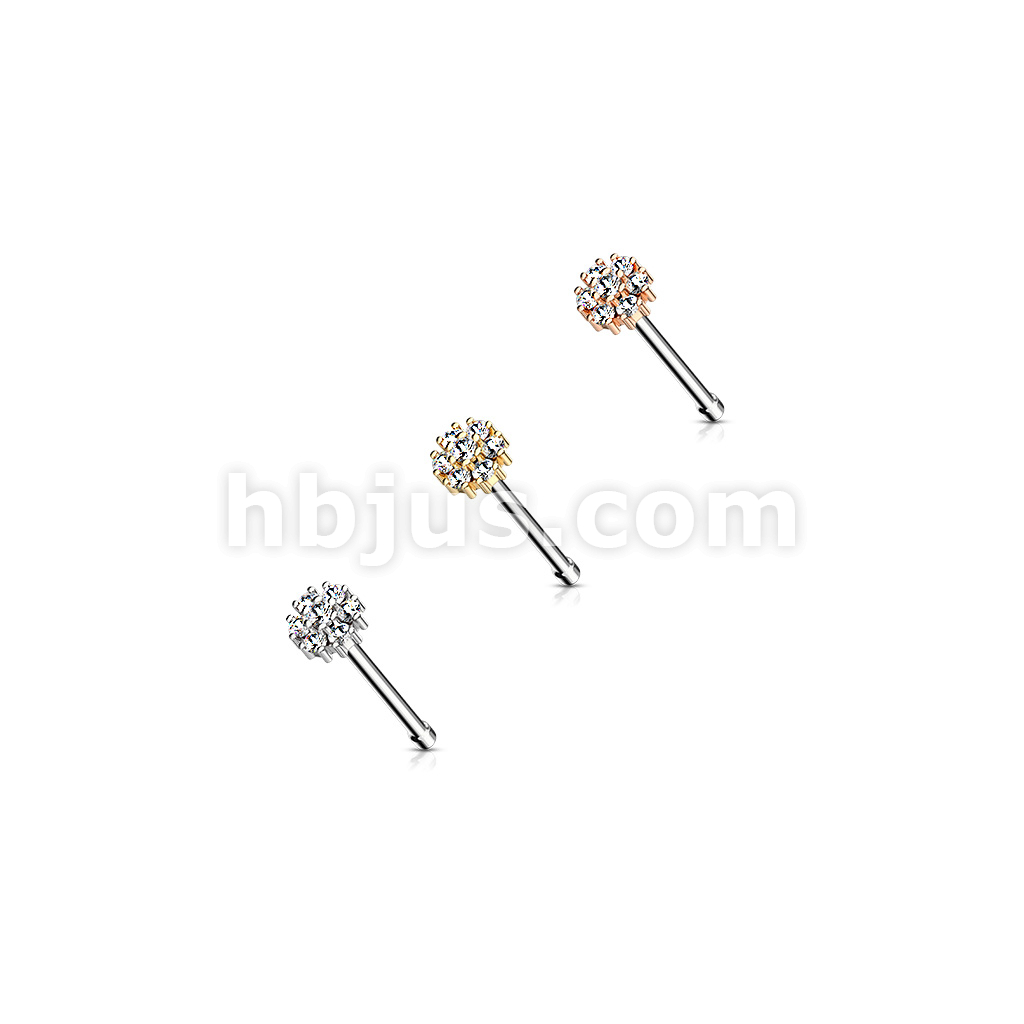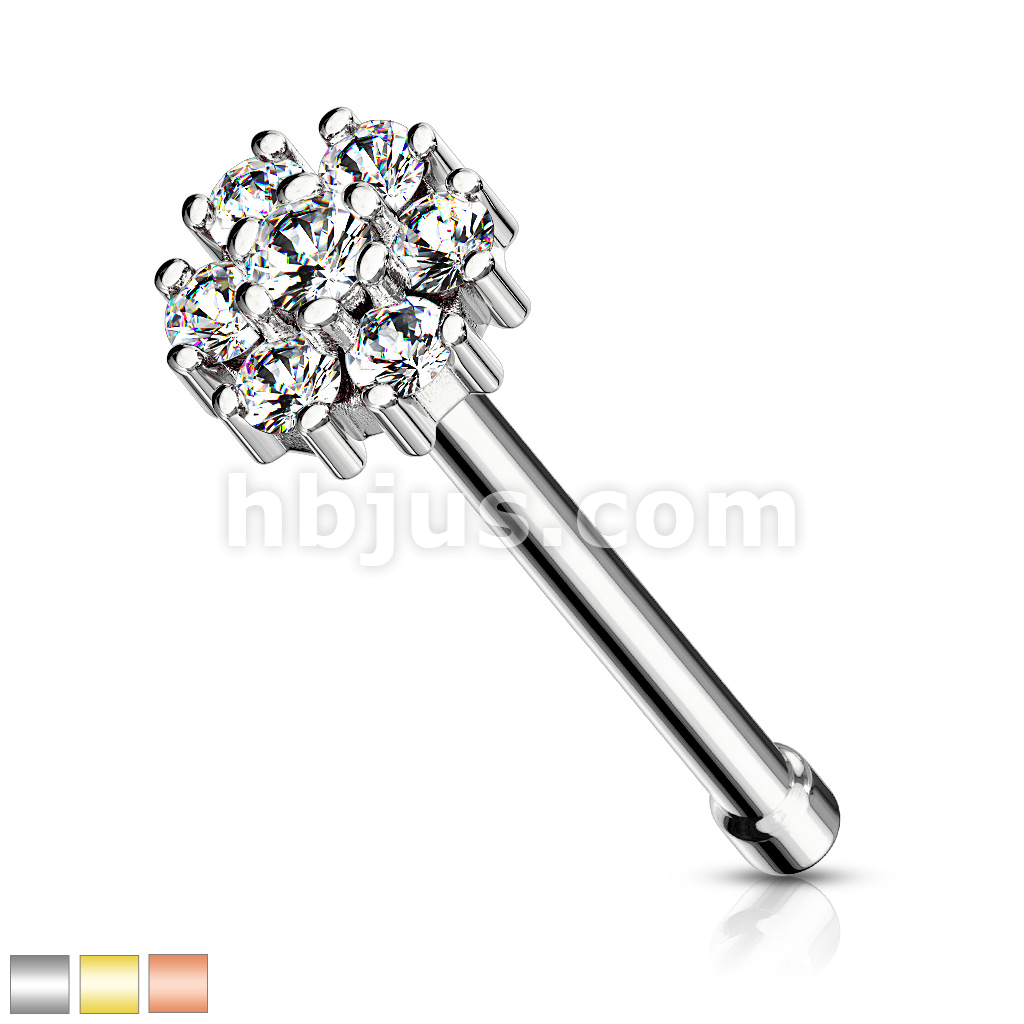 CZ Flower with Double Tiered CZ Center Top 316L Surgical Steel Nose Bone Stud