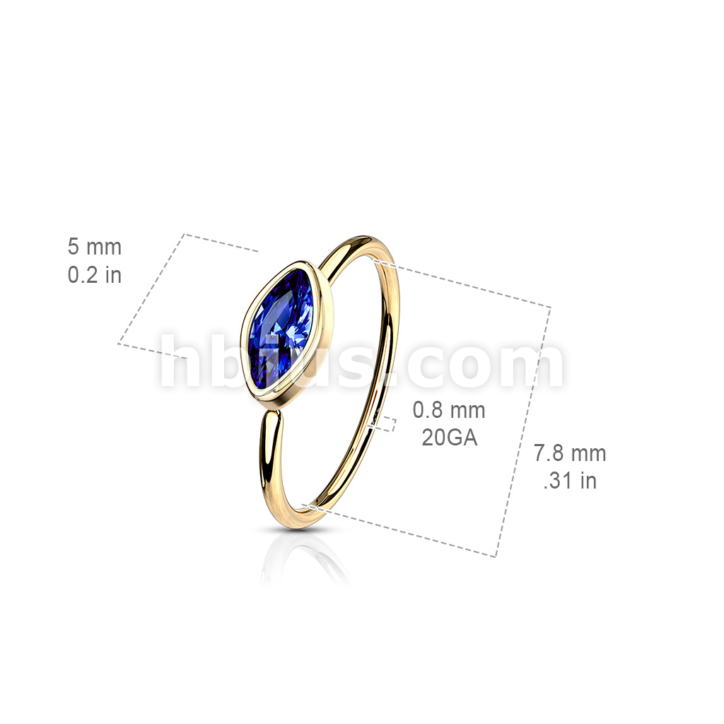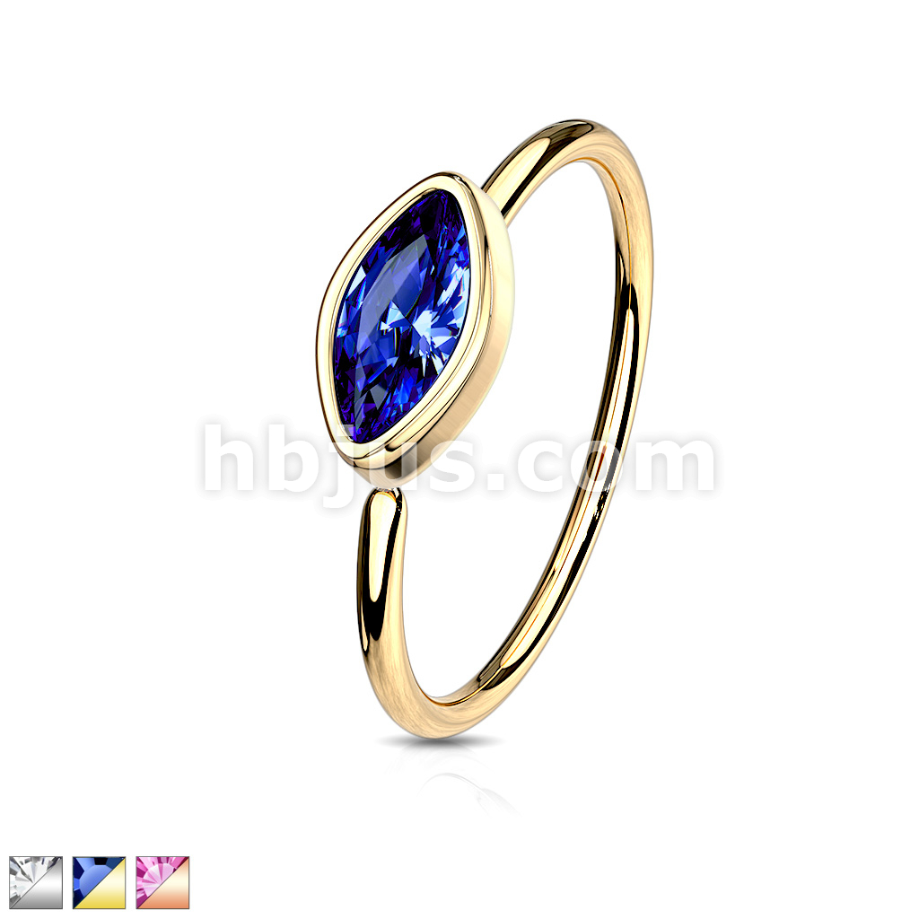 Marquise CZ Bezel Set Top 316L Surgical Steel Bendable Nose Hoop Rings