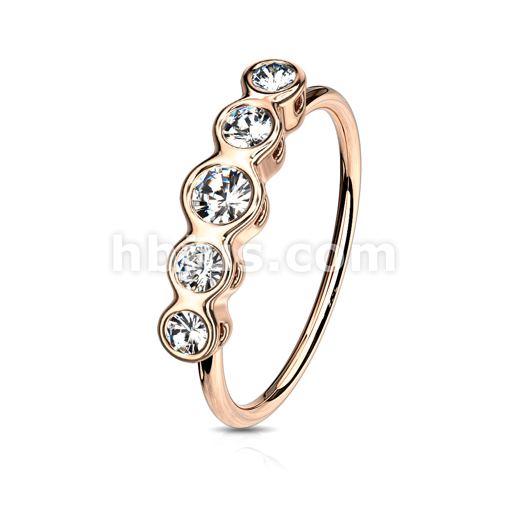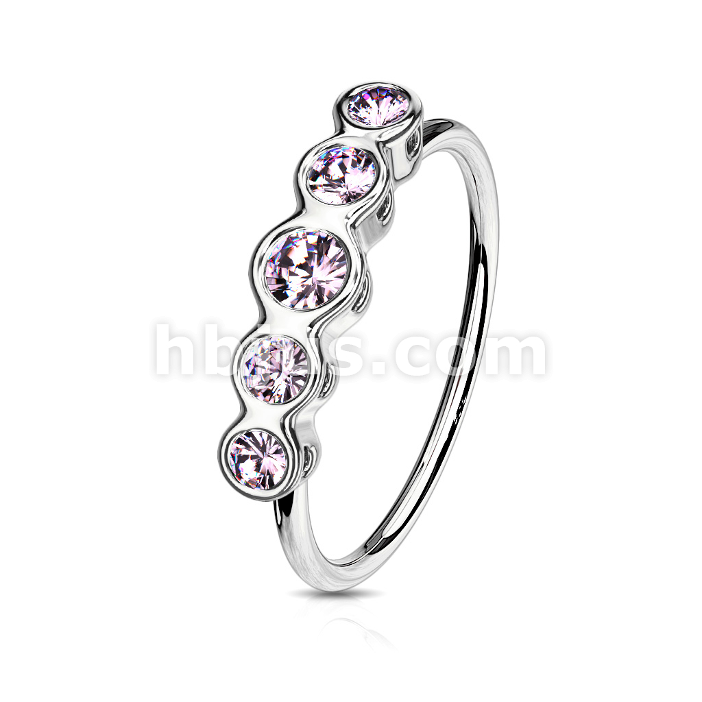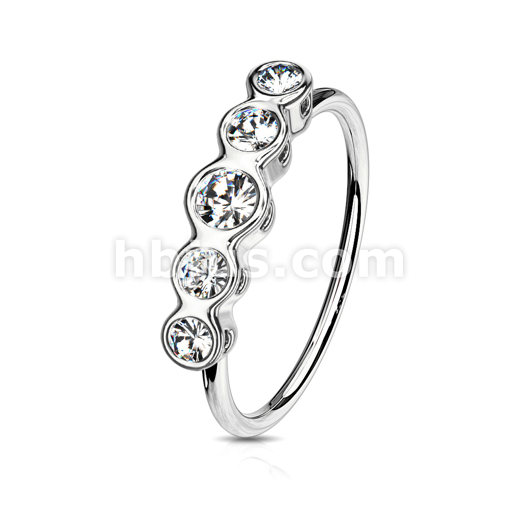Five Round CZ Bezel Set Top 316L Surgical Steel Bendable Hoop