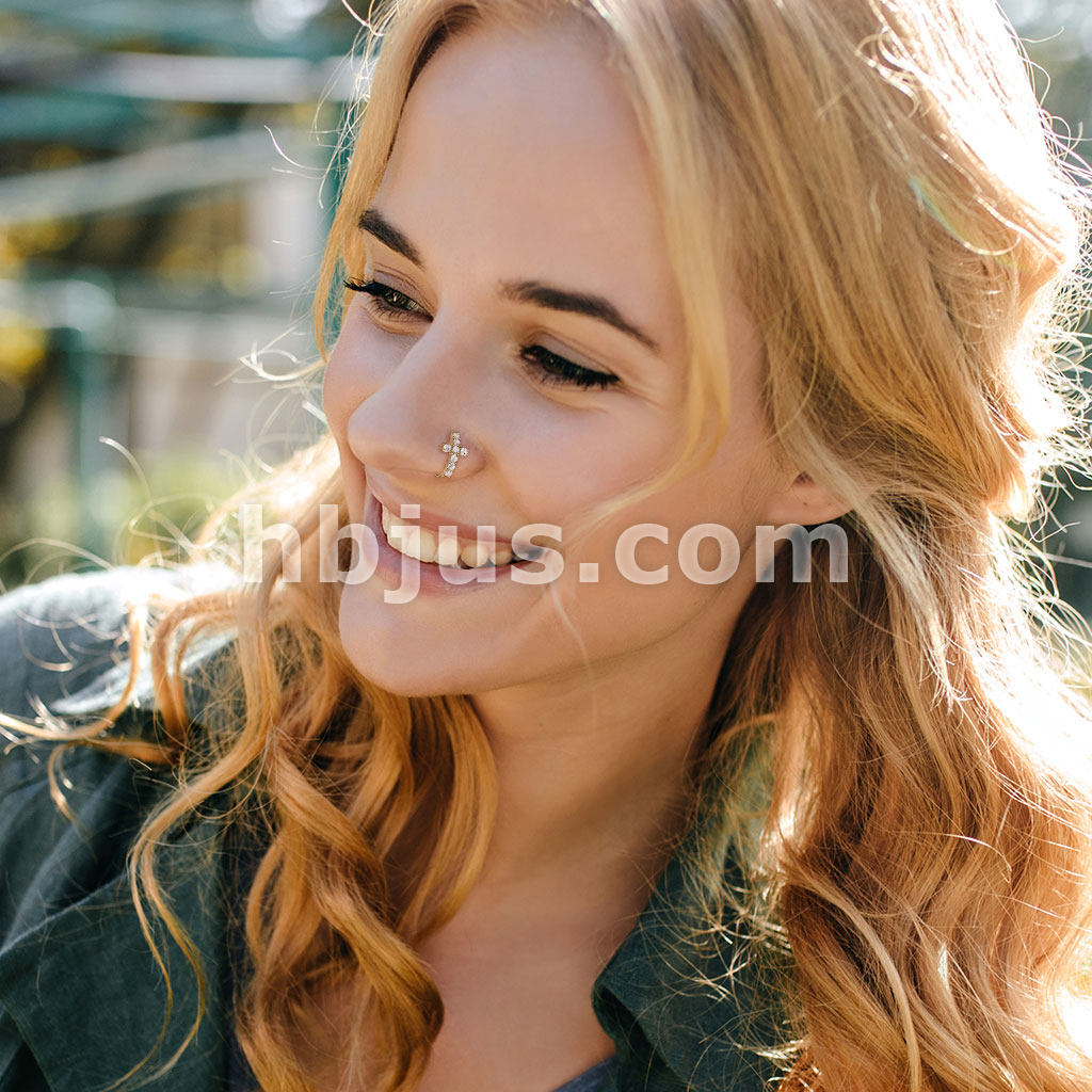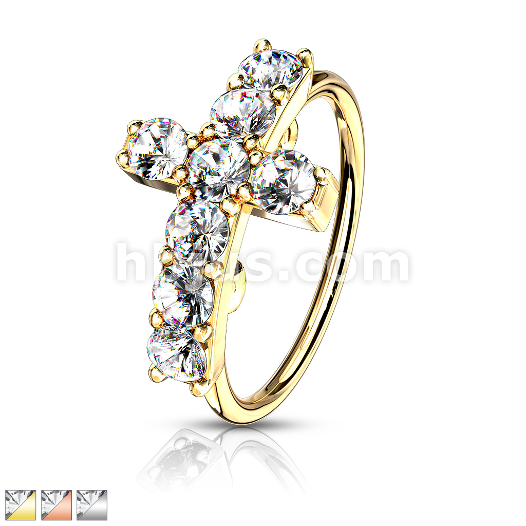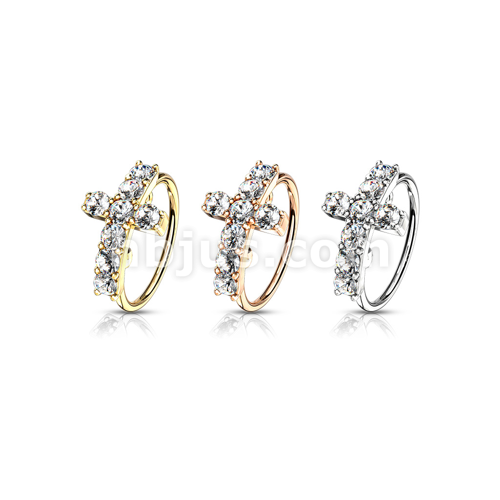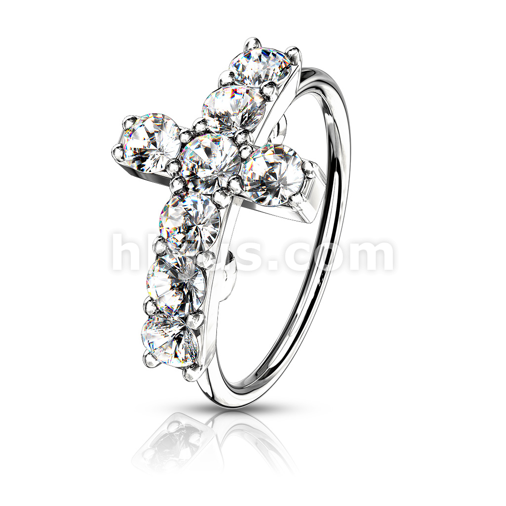 CZ Paved Cross Top 316L Surgical Steel Bendable Nose Hoop Rings