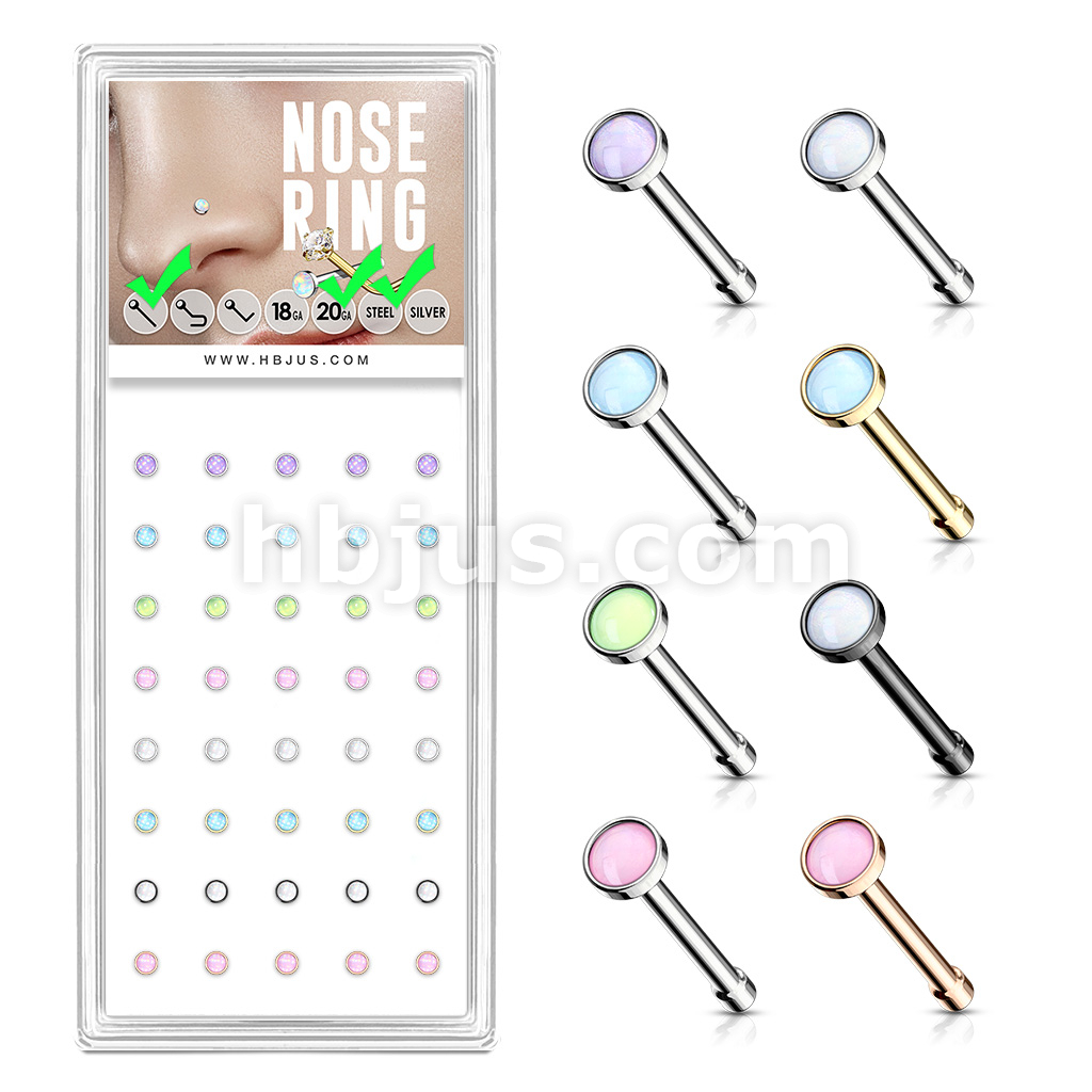 40 Pcs Pre Loaded Box of Illuminating Stone Set 20 Gauge 316L Surgical Steel Nose Studs Package